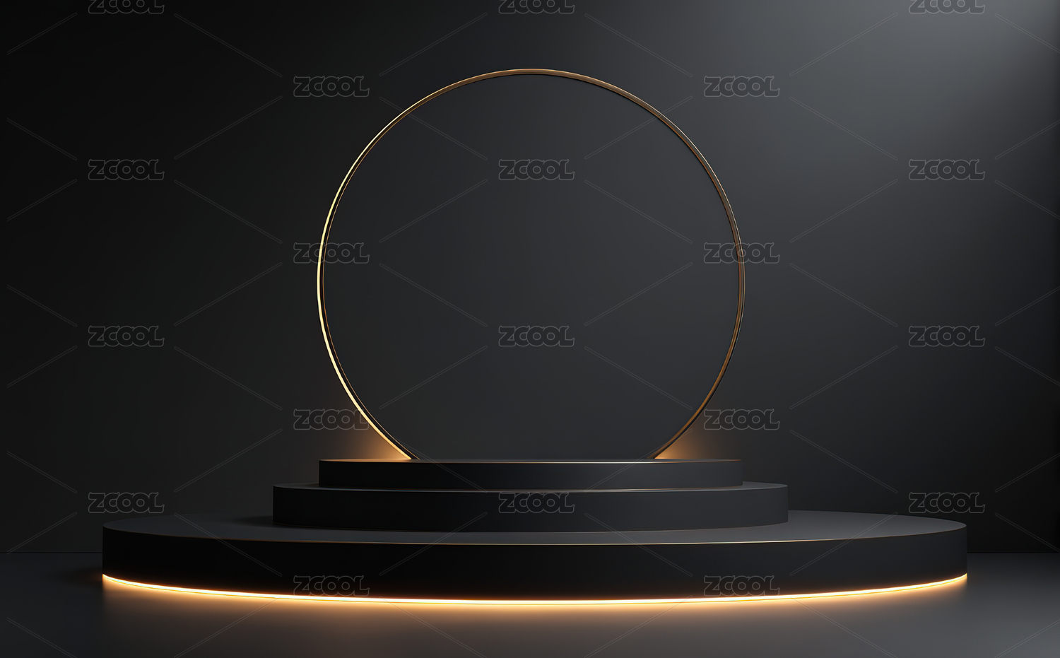 黑色圆形展台与金色光环