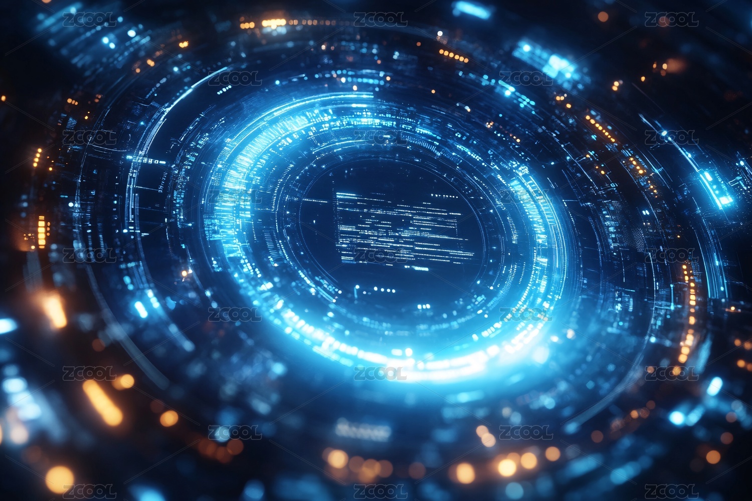 AI数字艺术,科学技术,未来,概念,圆形,背景,光,发光,科学,蓝色