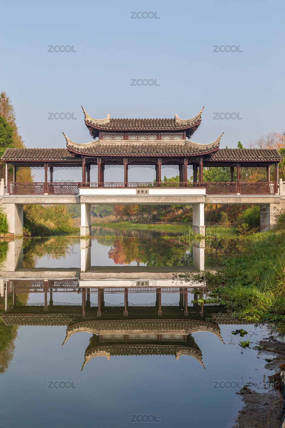 中国浙江嘉兴海宁盐官古城宣德廊桥桥亭