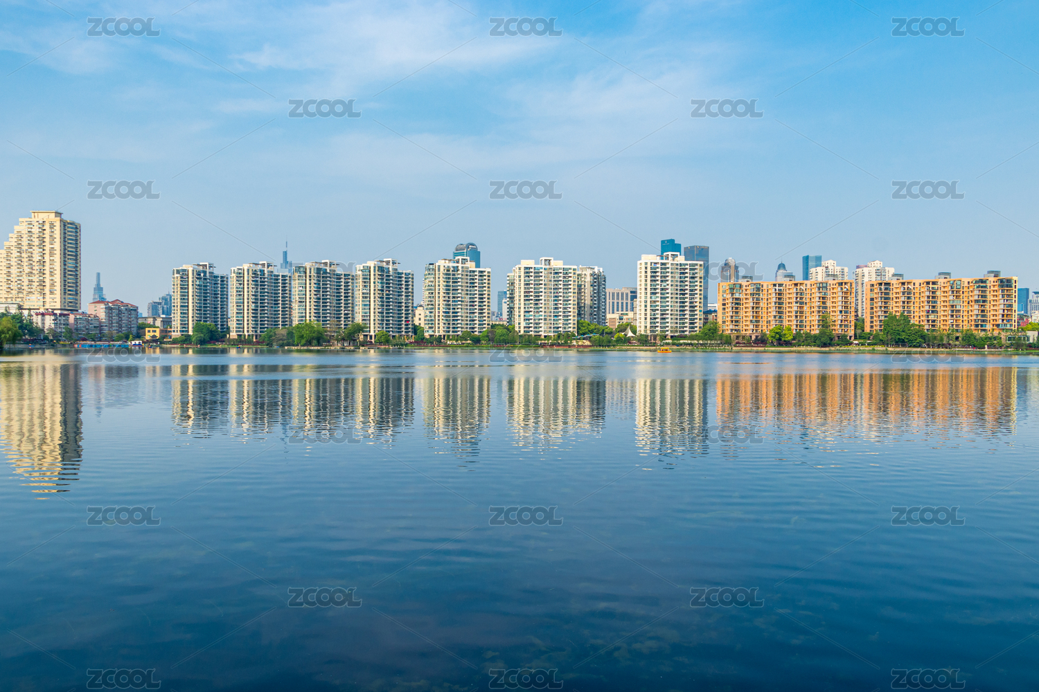 浙江绍兴柯桥瓜渚湖畔城市建筑风光