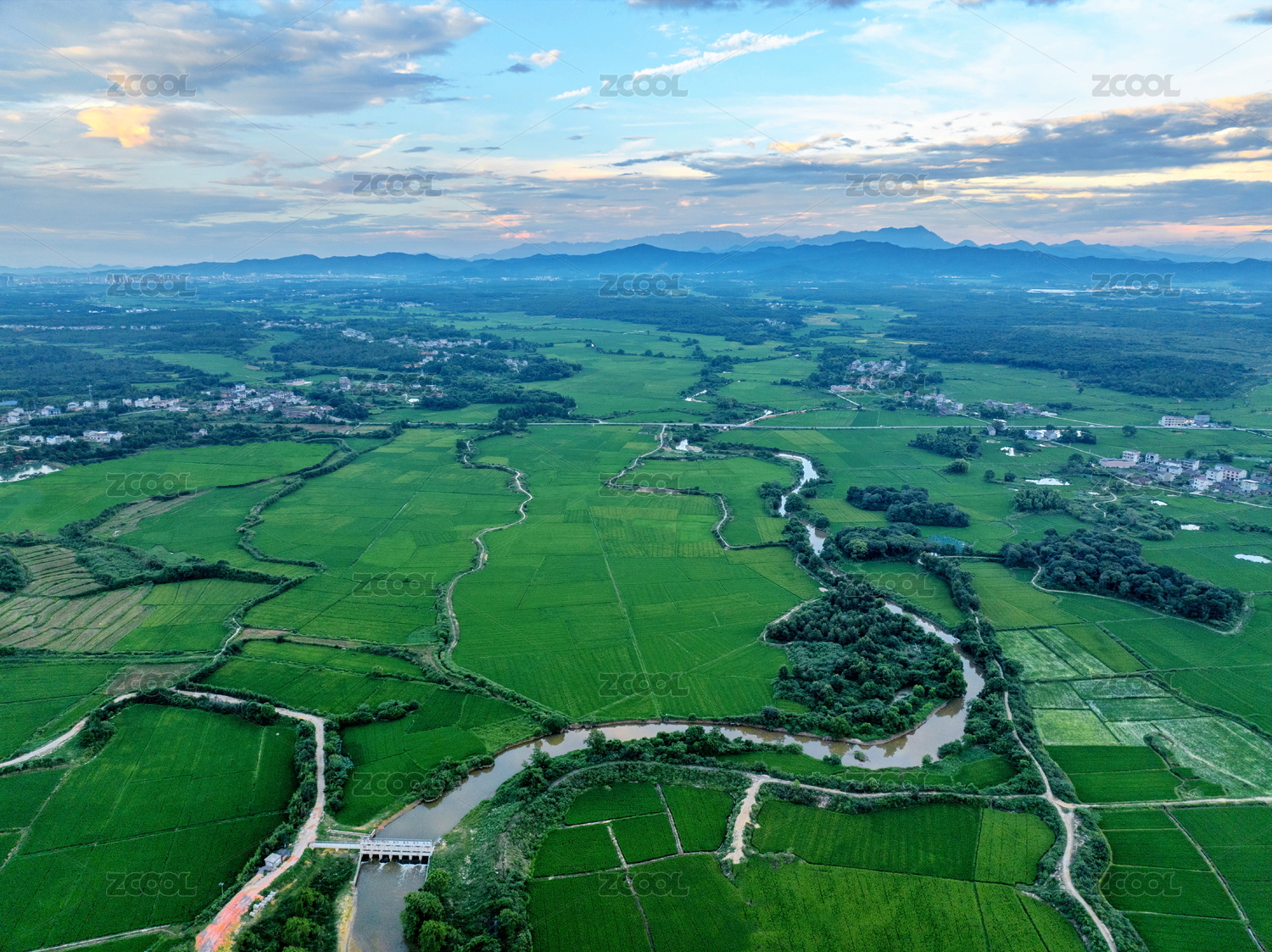 晚稻生产,晚稻,粮食生产,田园风光,农村,无人机,航拍,绿色,村庄,河流