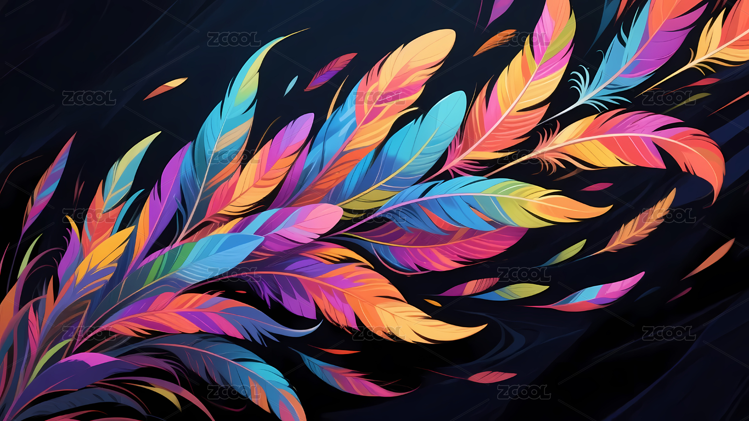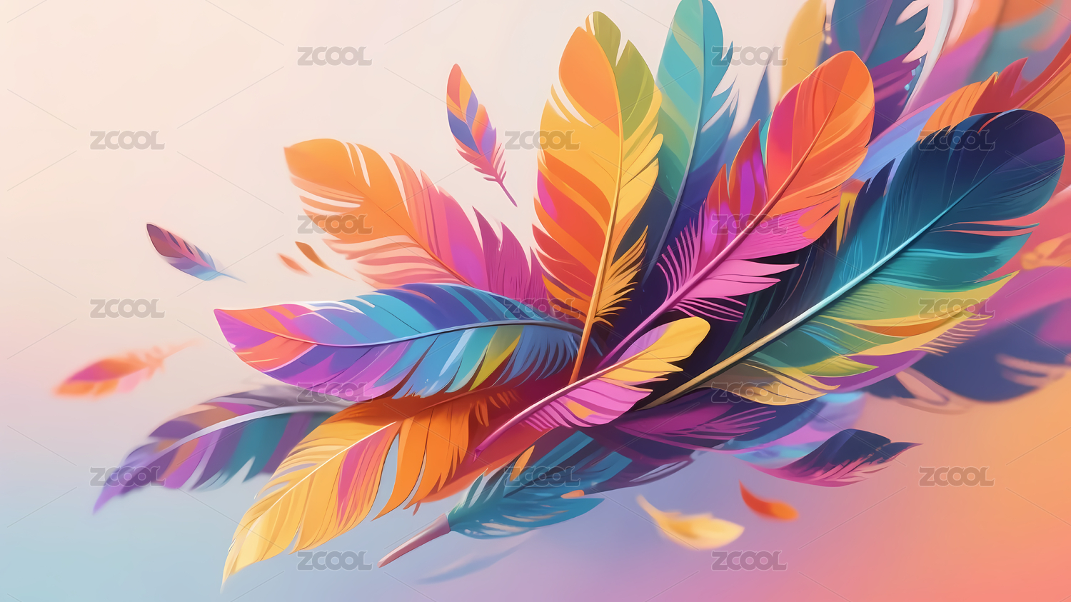 数码彩虹色羽毛印花抽象图形海报网页背景