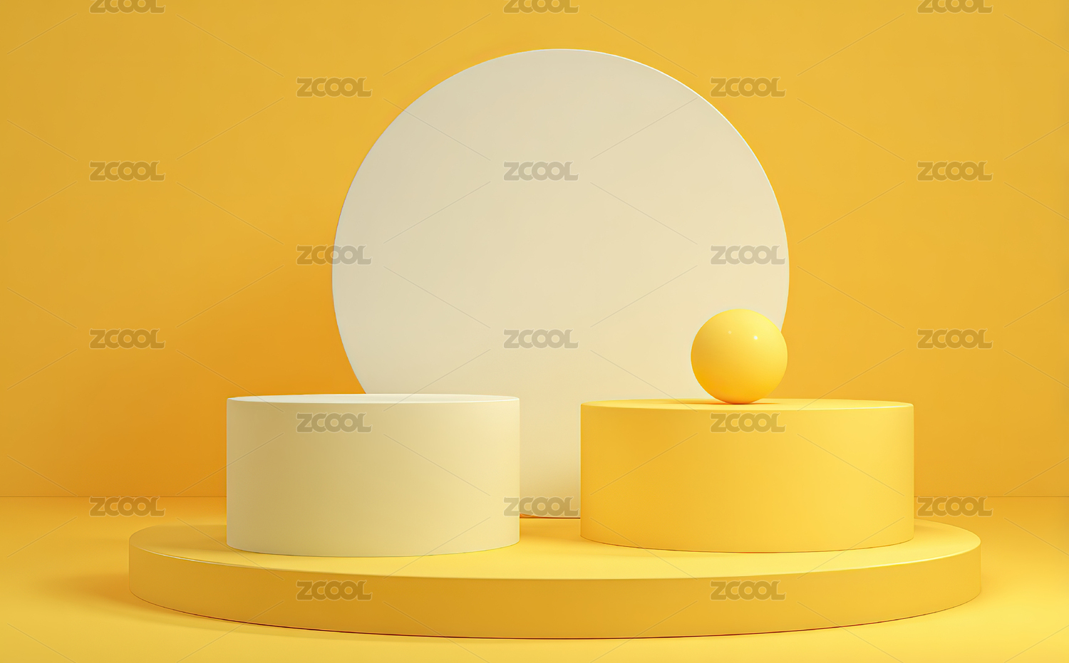 黄色背景上的几何造型展示台