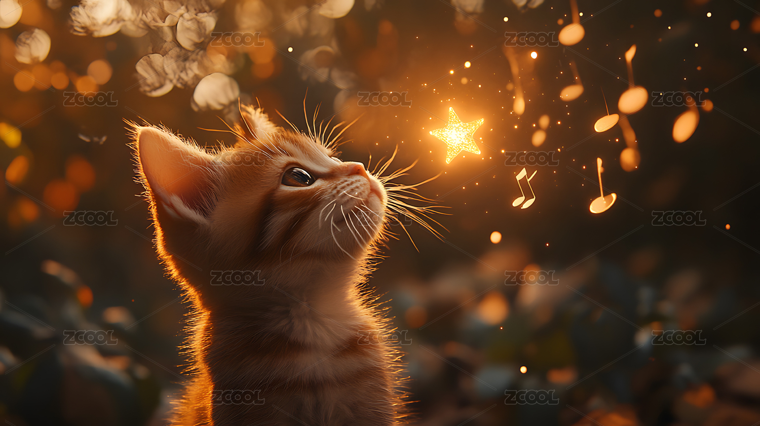 梦幻一只仰着脸的宠物猫3D立体卡通插画