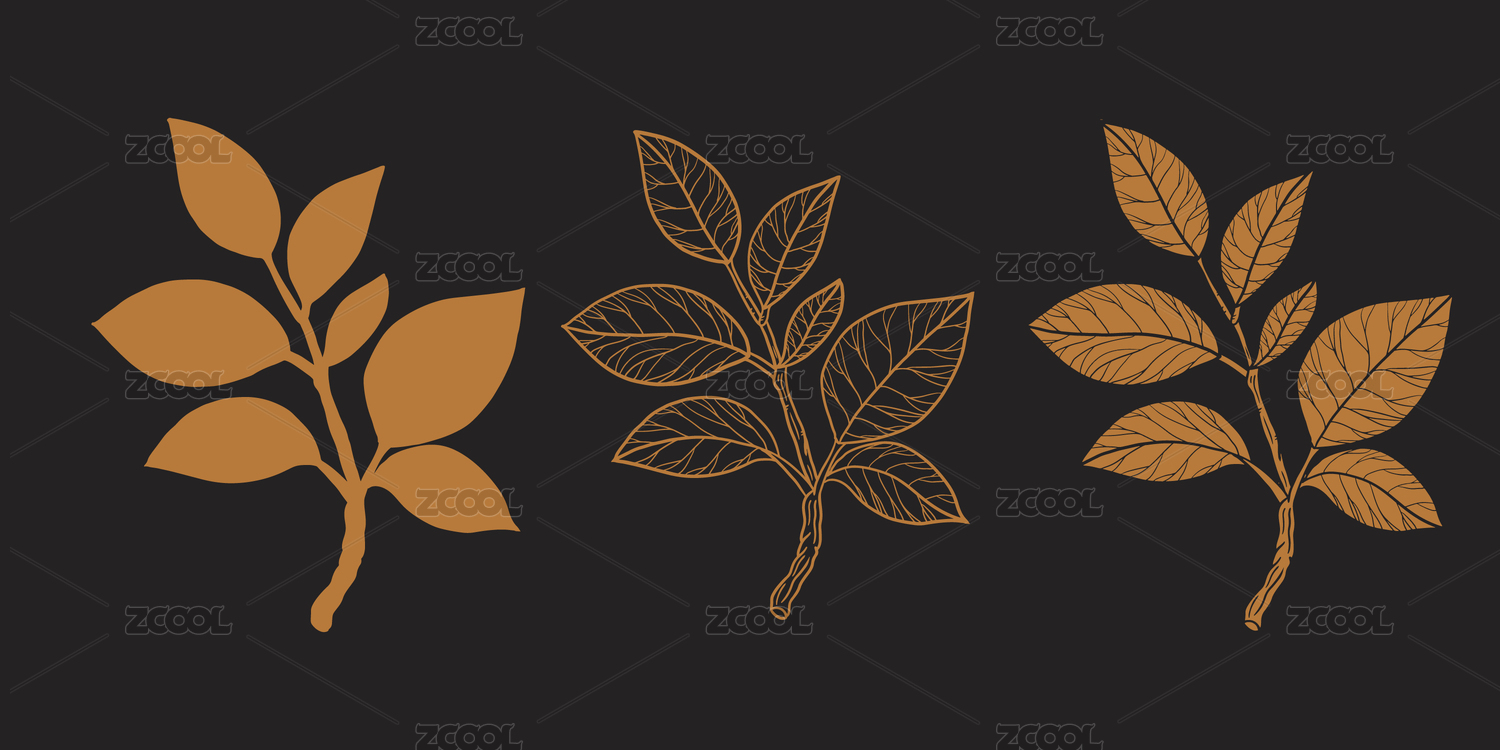 树叶茶叶线稿雕刻叶子矢量标识背景插图