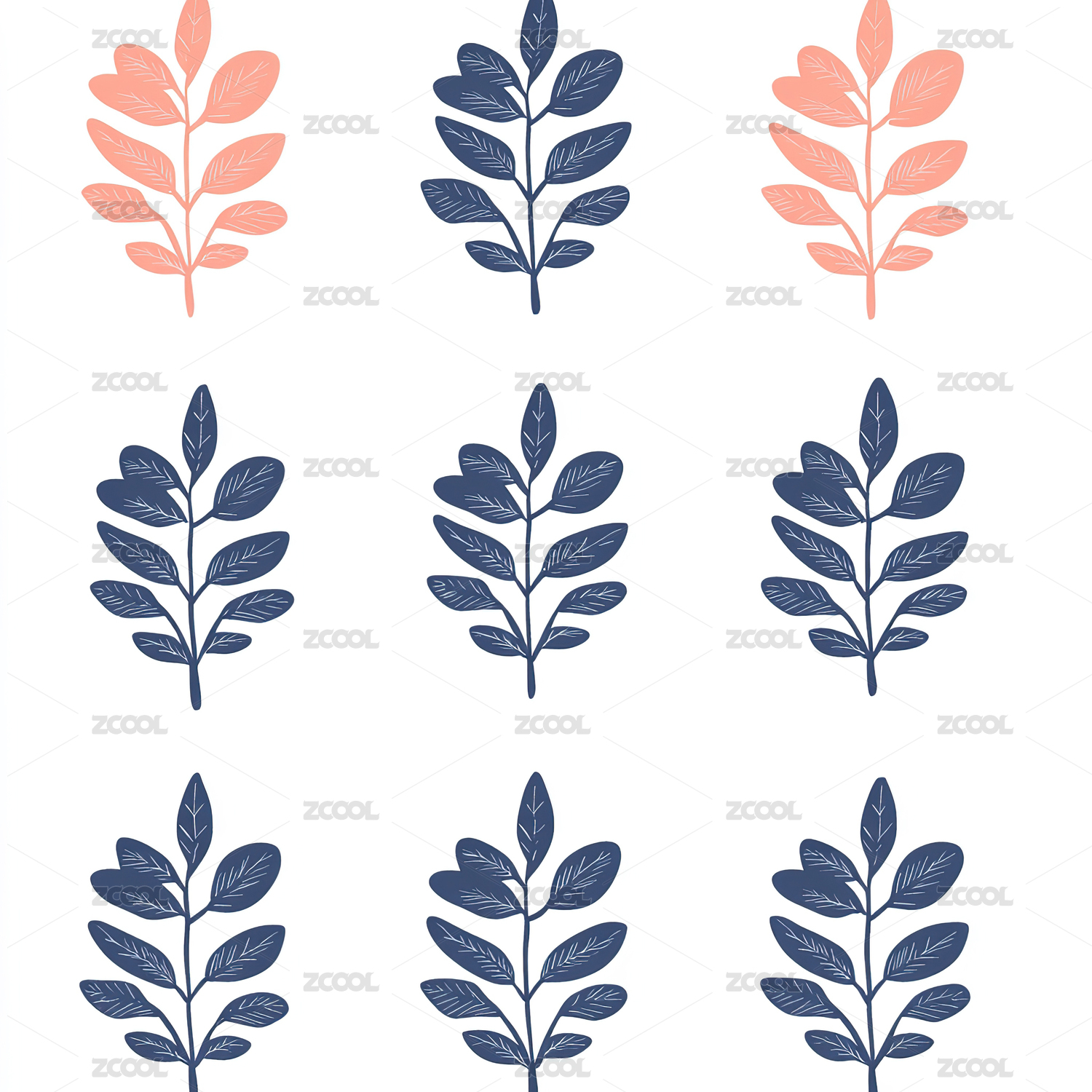 金色矢量纺织印刷叶子线稿装饰画手绘插画