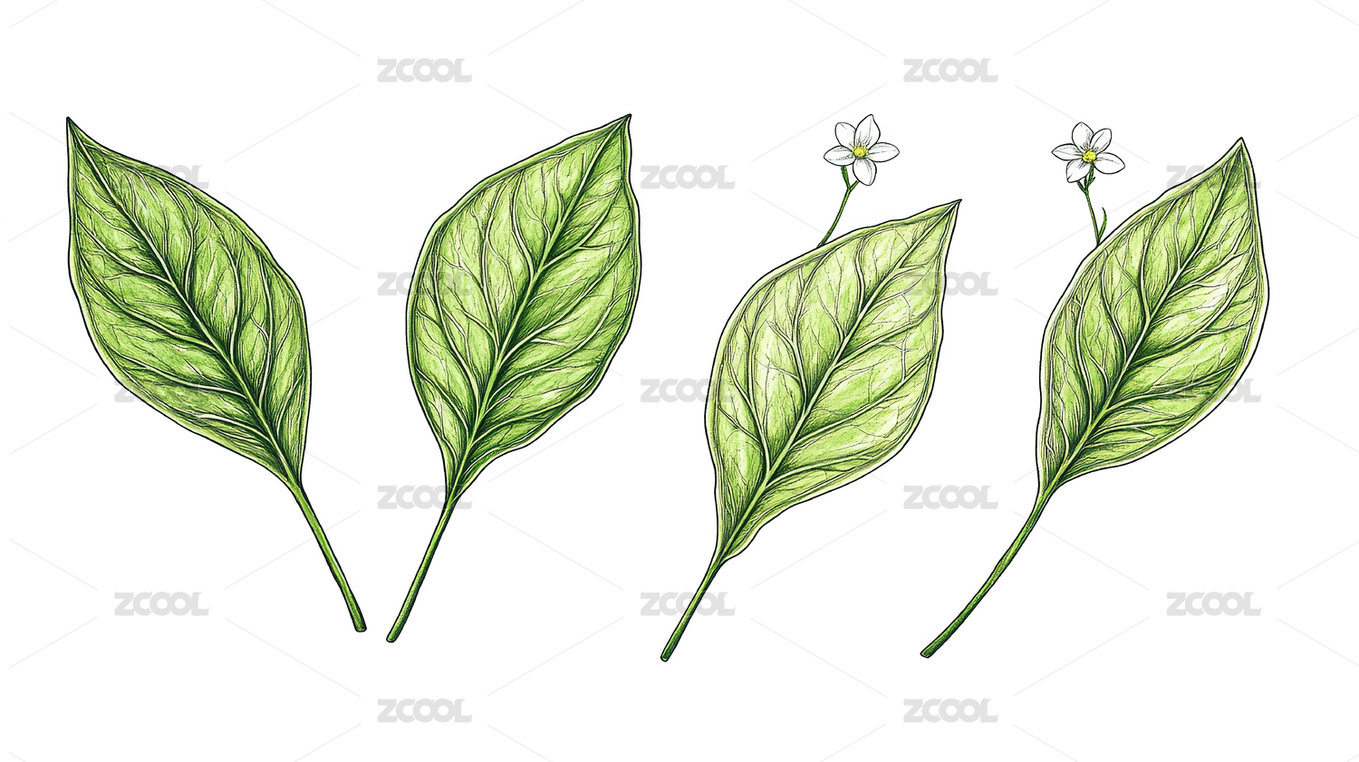茶叶,绿叶,勾线,描边,水彩,绿茶,纹理,背景,植物,春天