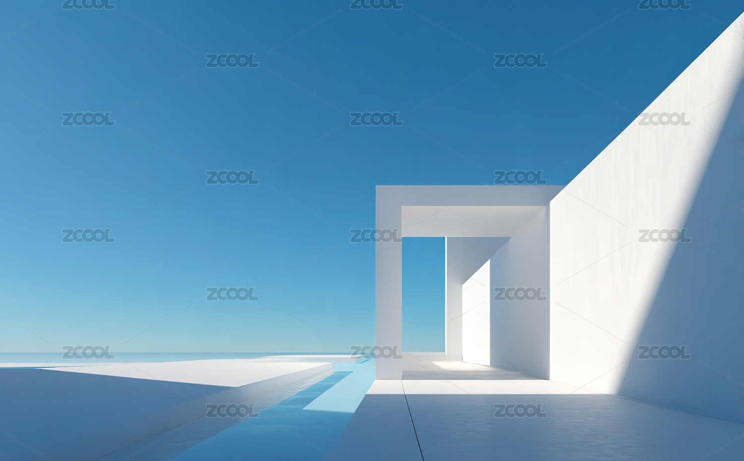 白色建筑与蓝天的几何构图