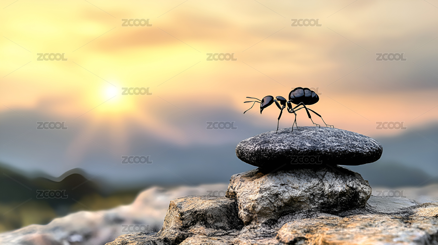 健身爱好的蚂蚁努力地将杠铃举过头顶创意