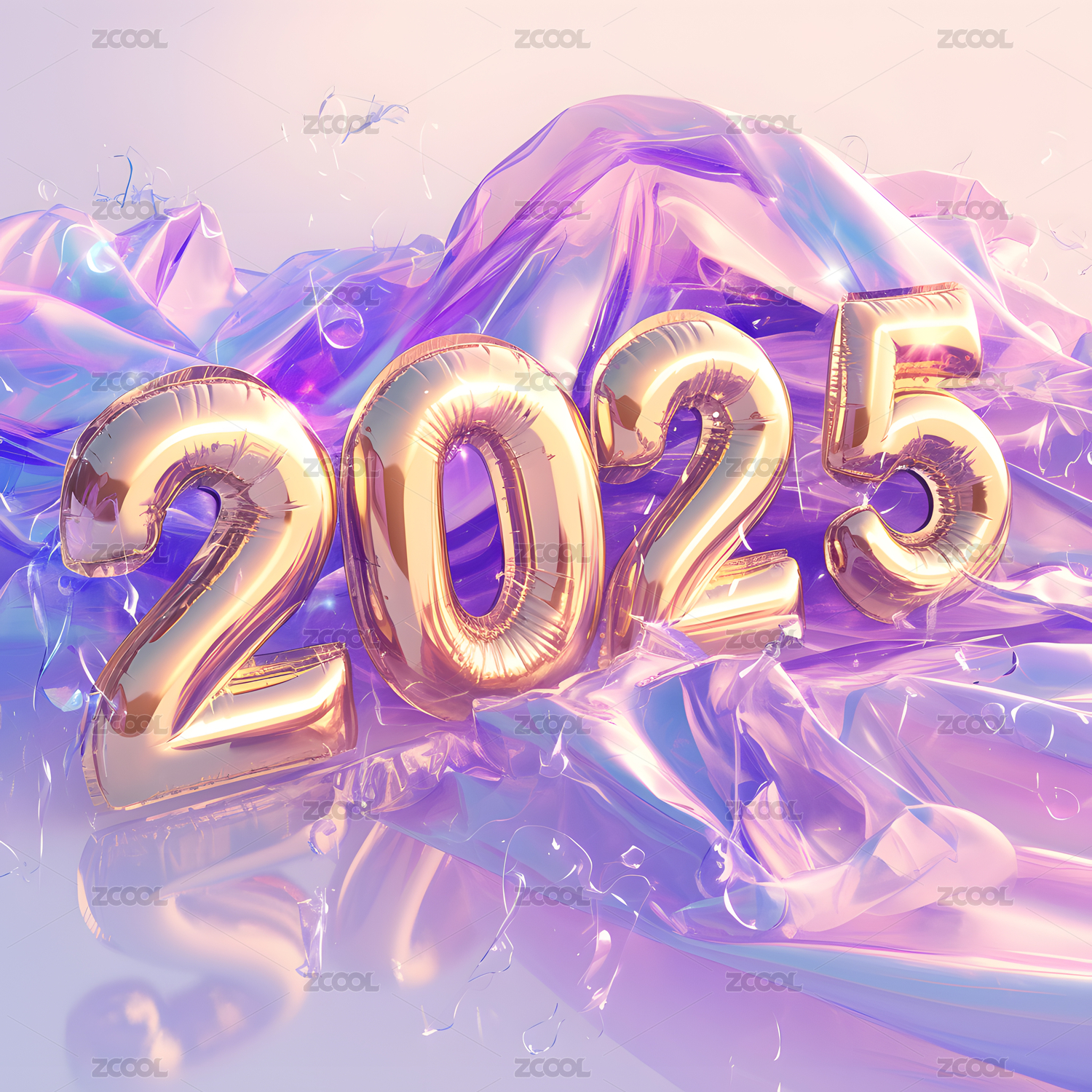 3D透明紫色玻璃质感数字2026