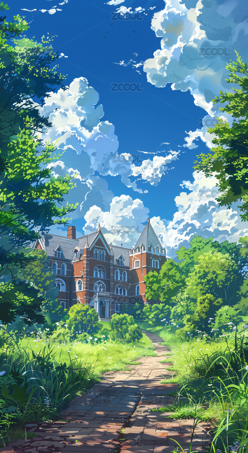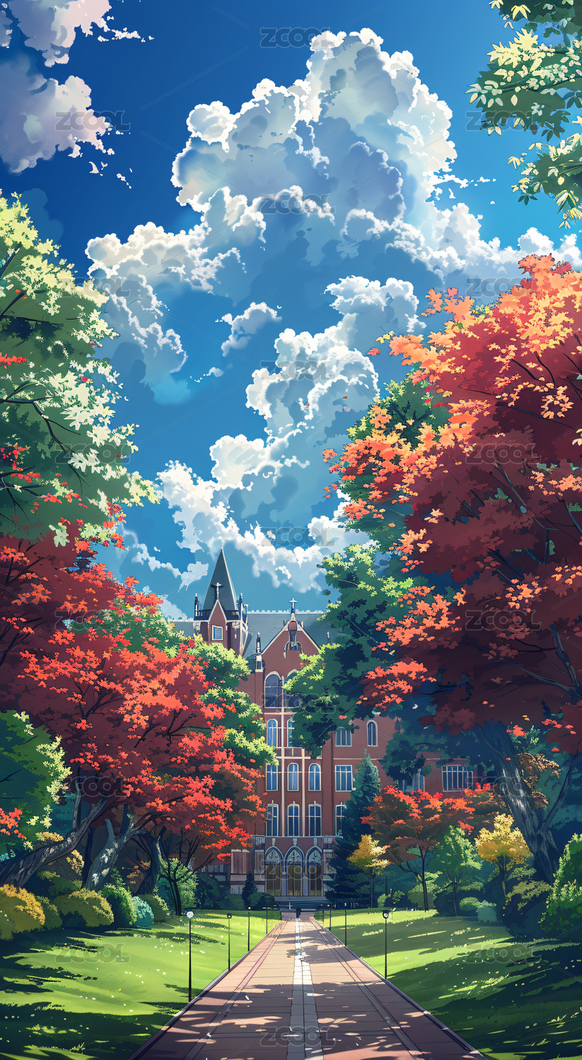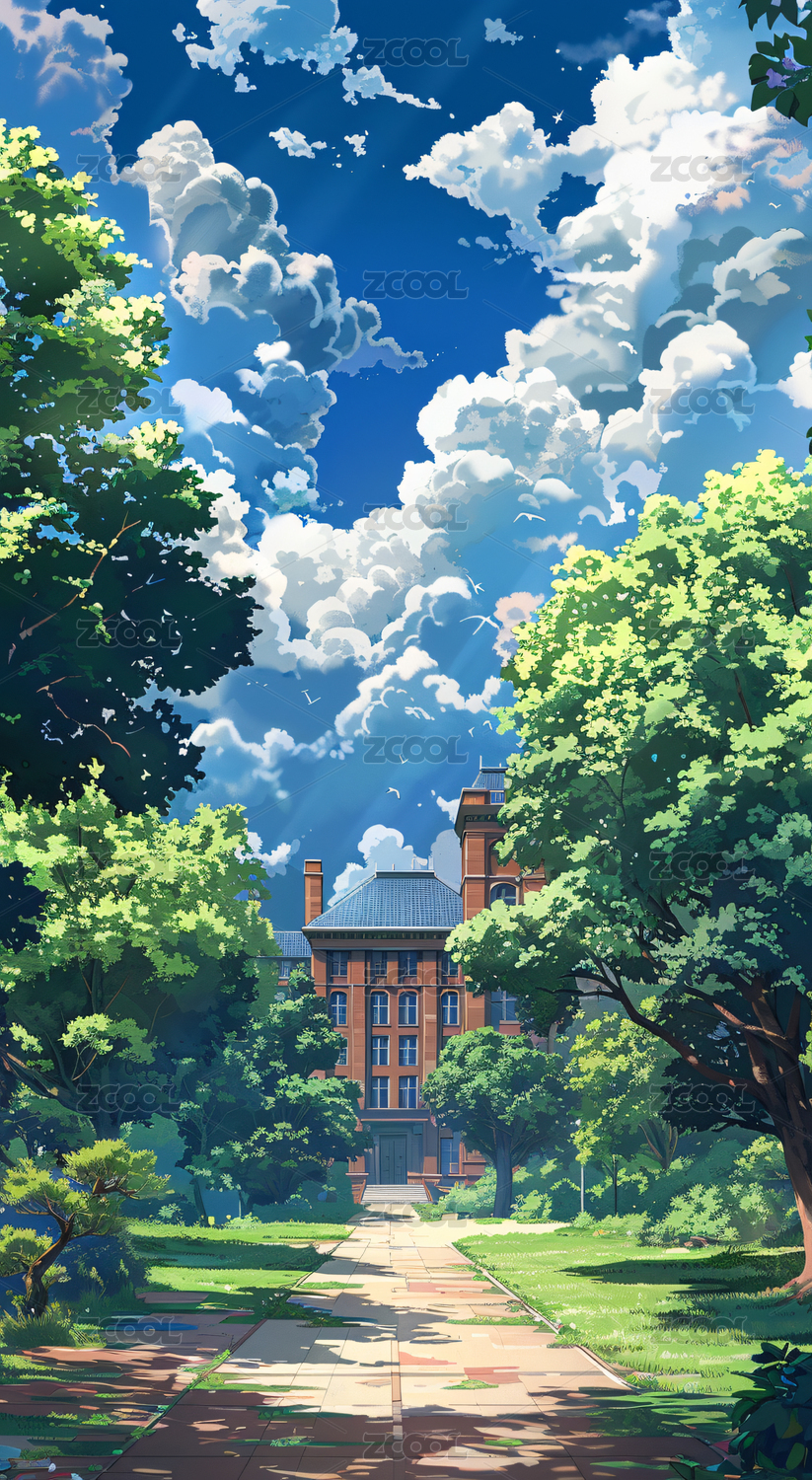 九月开学季蓝天白云校园