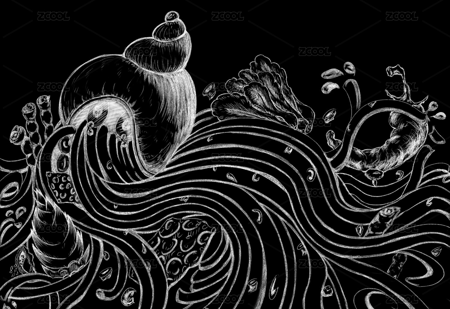 上古,传说,神话,鲛人,大海,古风,线条,人鱼