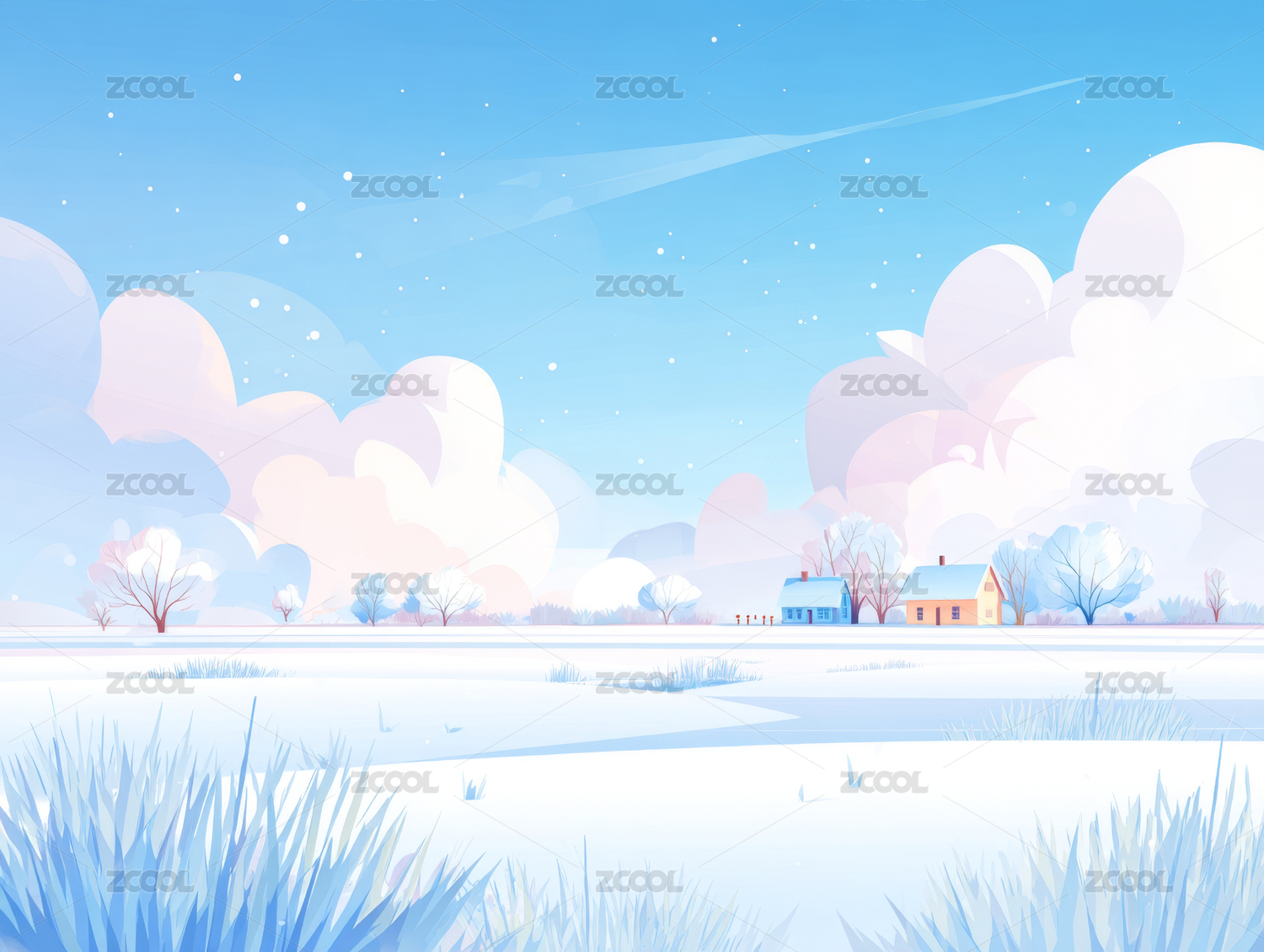 冬天,设计,插画,自然,高山,房屋,节日,节气,小雪,蓝色