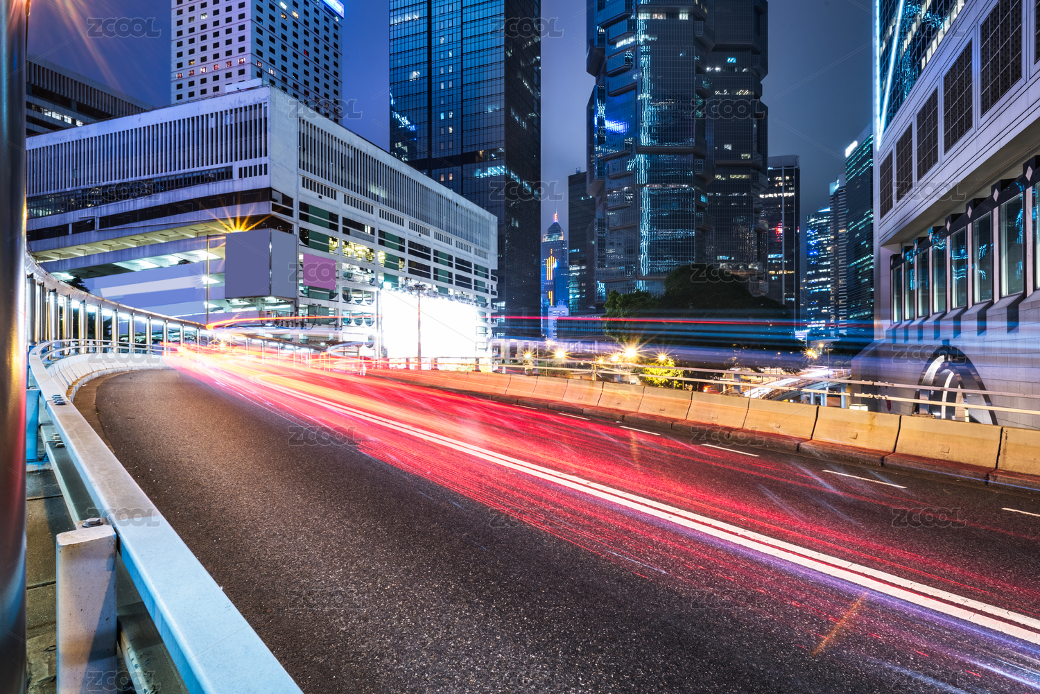 香港夜景,飞驰的汽车尾灯形成的光的轨迹