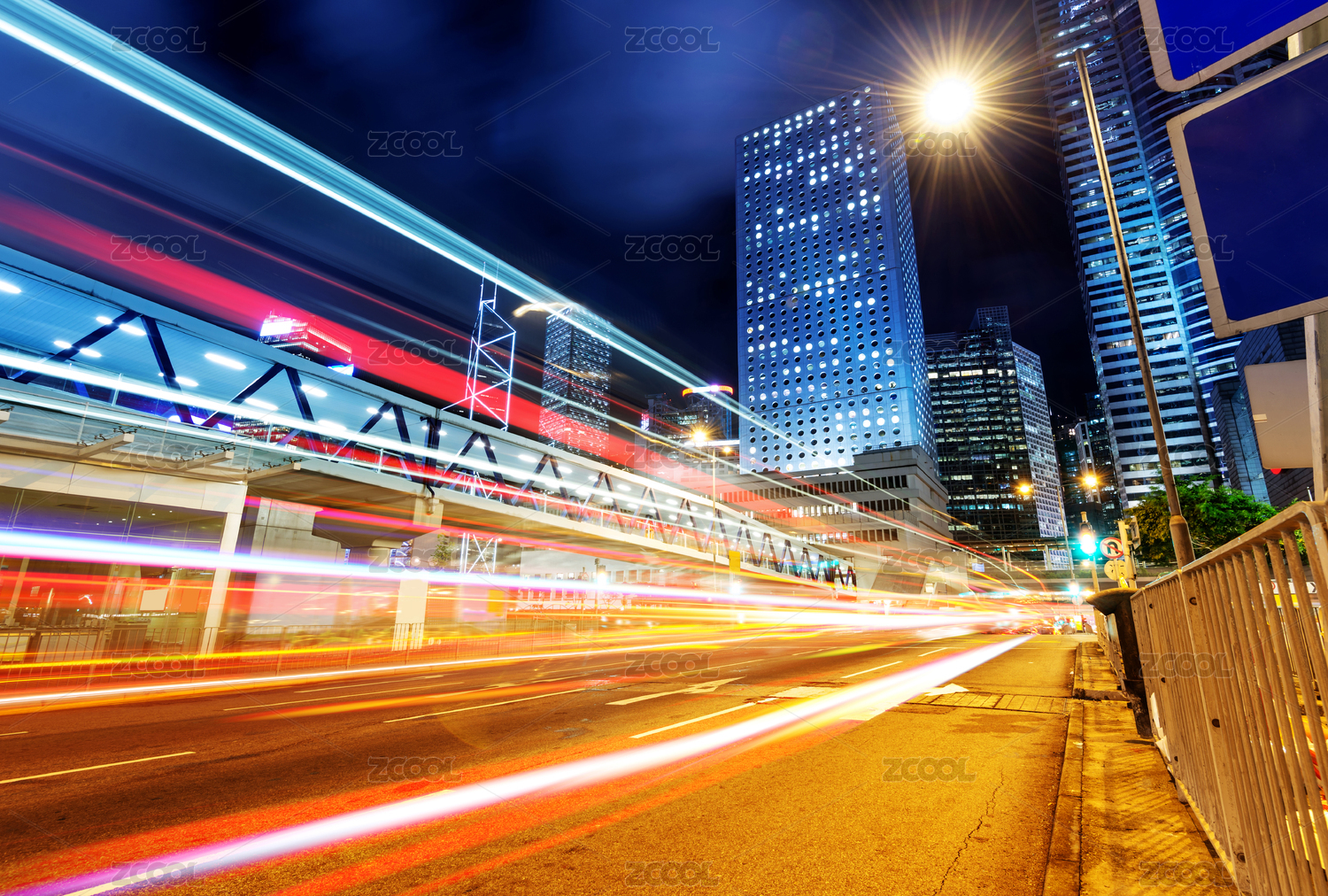 通过人行天桥光迹,中国香港。