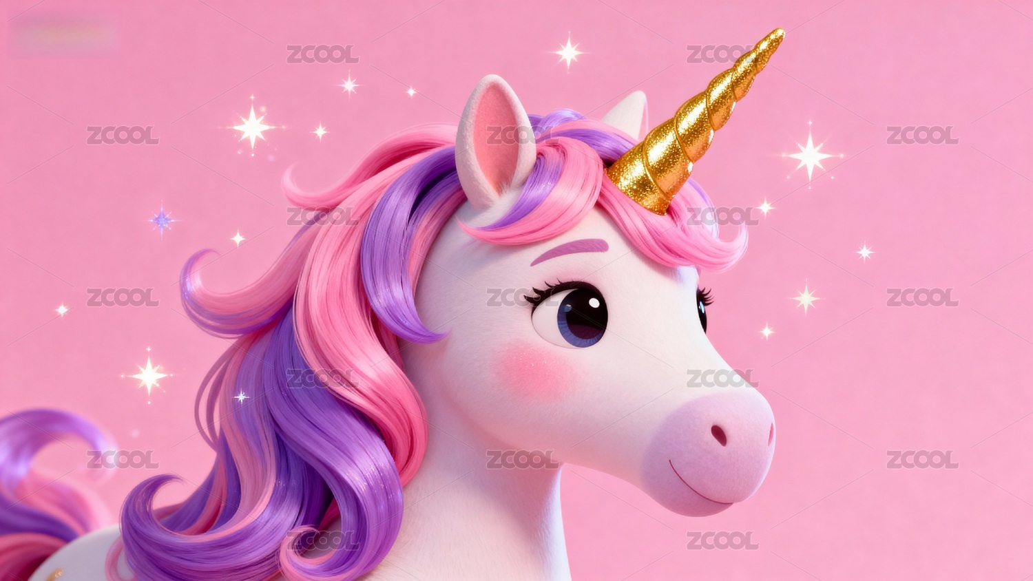 背景,插画,可爱,梦幻,创意,三维,立体,3D,卡通,独角兽