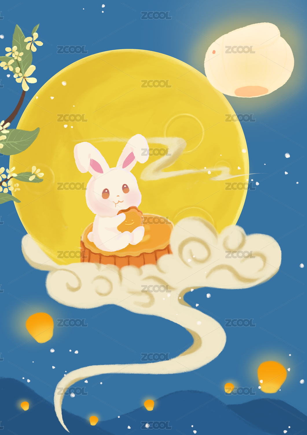 兔子 月亮 月饼 中秋 奶酪 夜空 海报