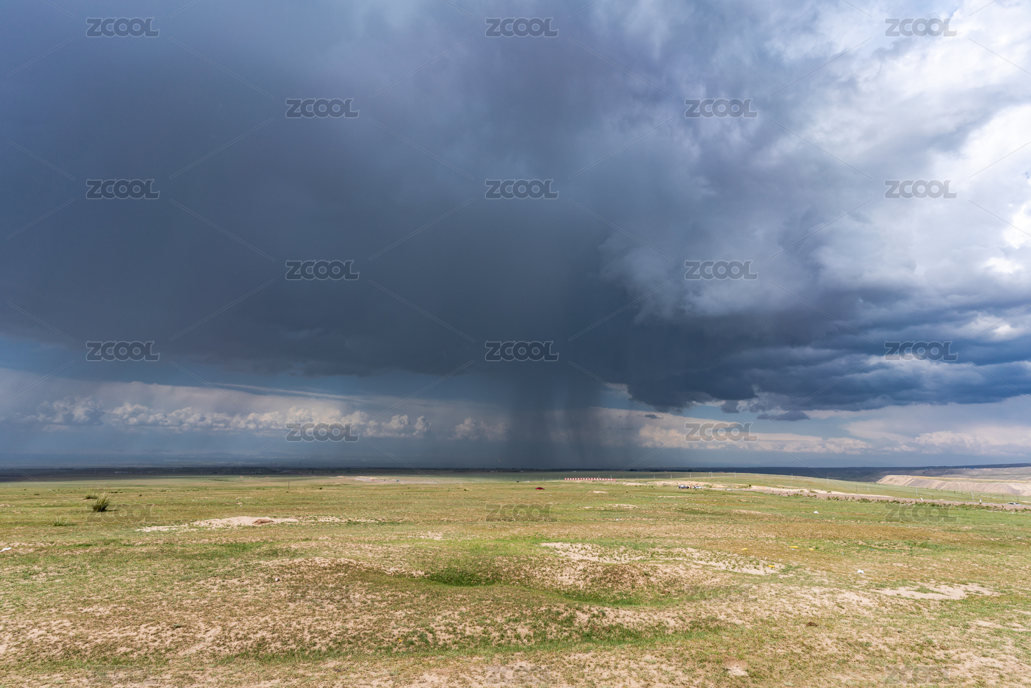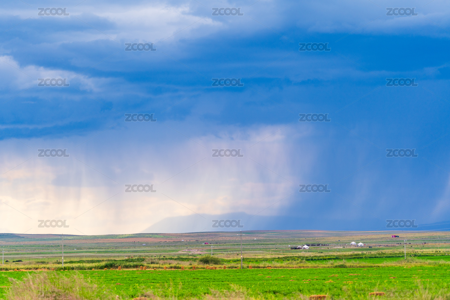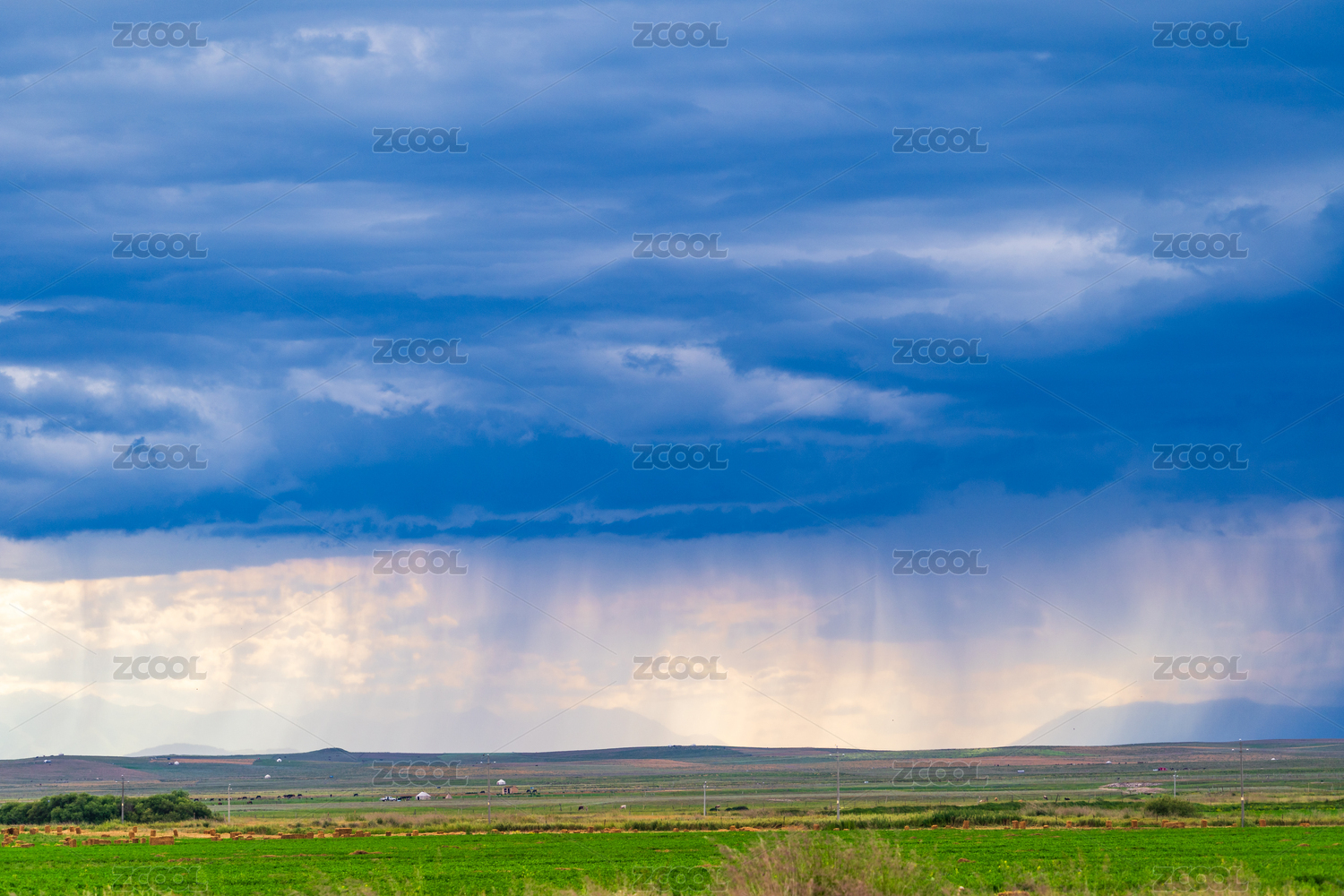 中国新疆伊犁远处草原倾盆大雨草原气候
