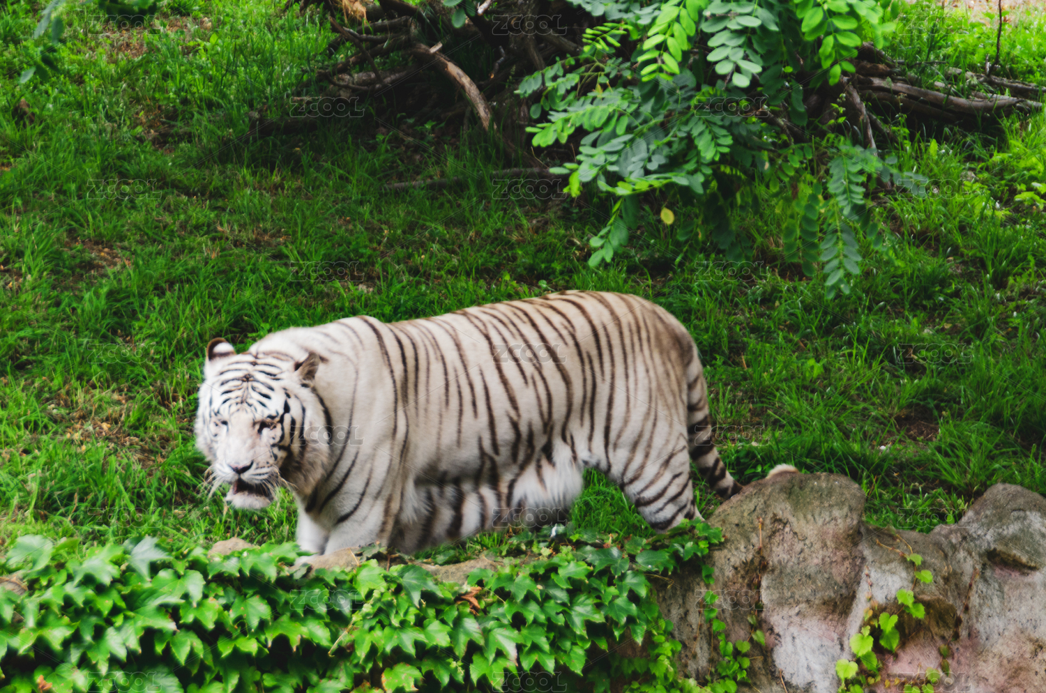 丛林里一只凶猛的白虎在穿行