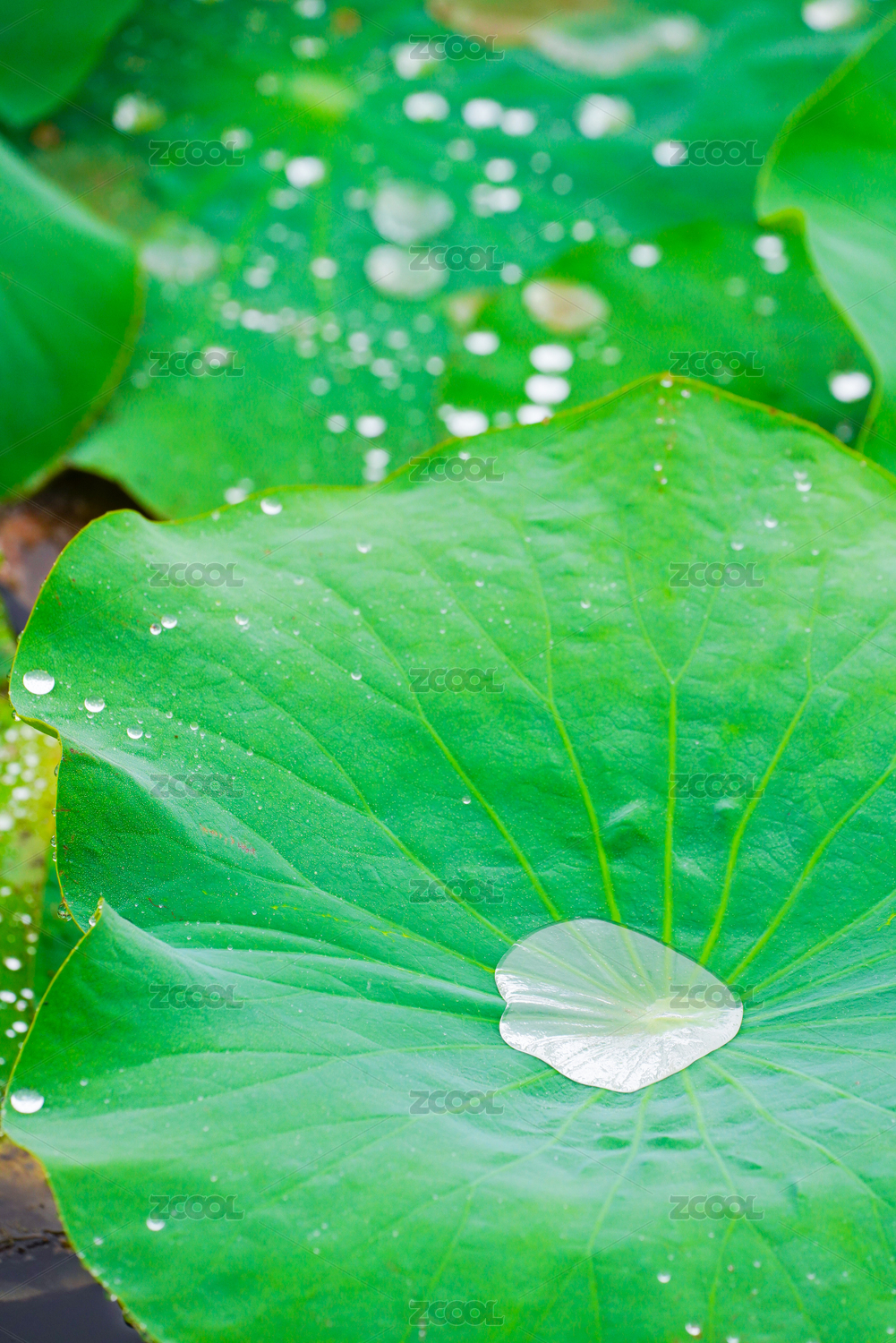 夏天雷雨后沾满晶莹剔透的水珠的荷叶