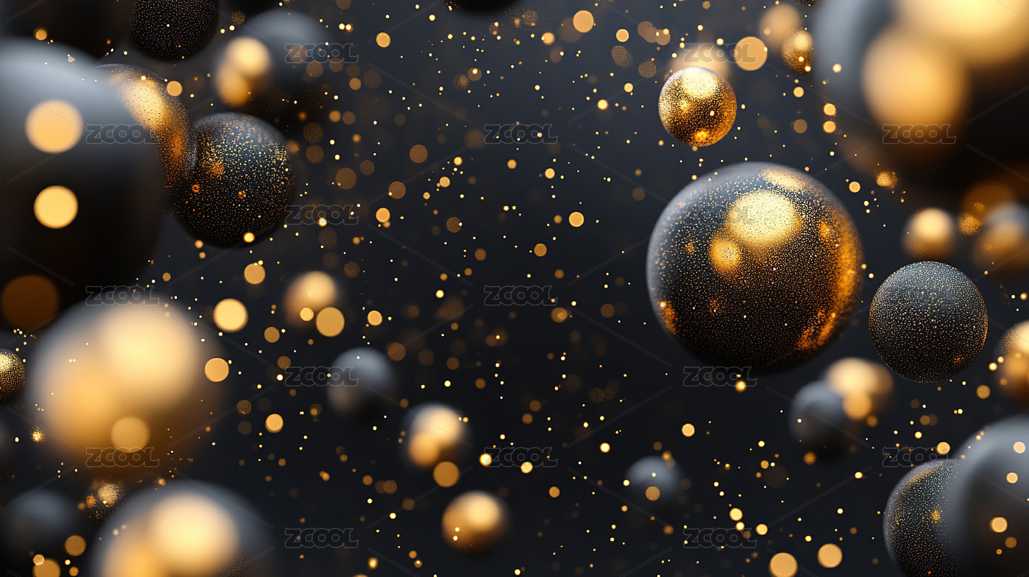 节日庆典派对用的金色玻璃小球汇聚的背景素材