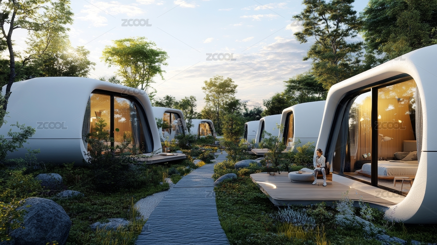AIGC202401,现代,虚拟,未来,空间,建筑,曲线,流畅,简约,广角