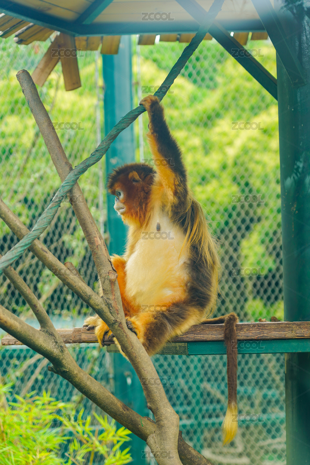动物园里的一只赤猴在树上发呆