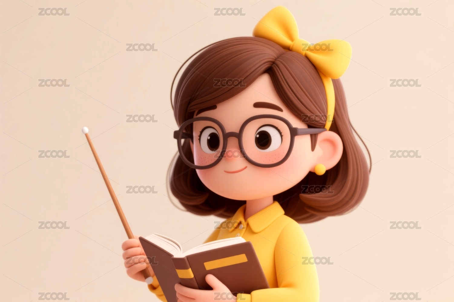 3D卡通戴眼镜的女老师在上课