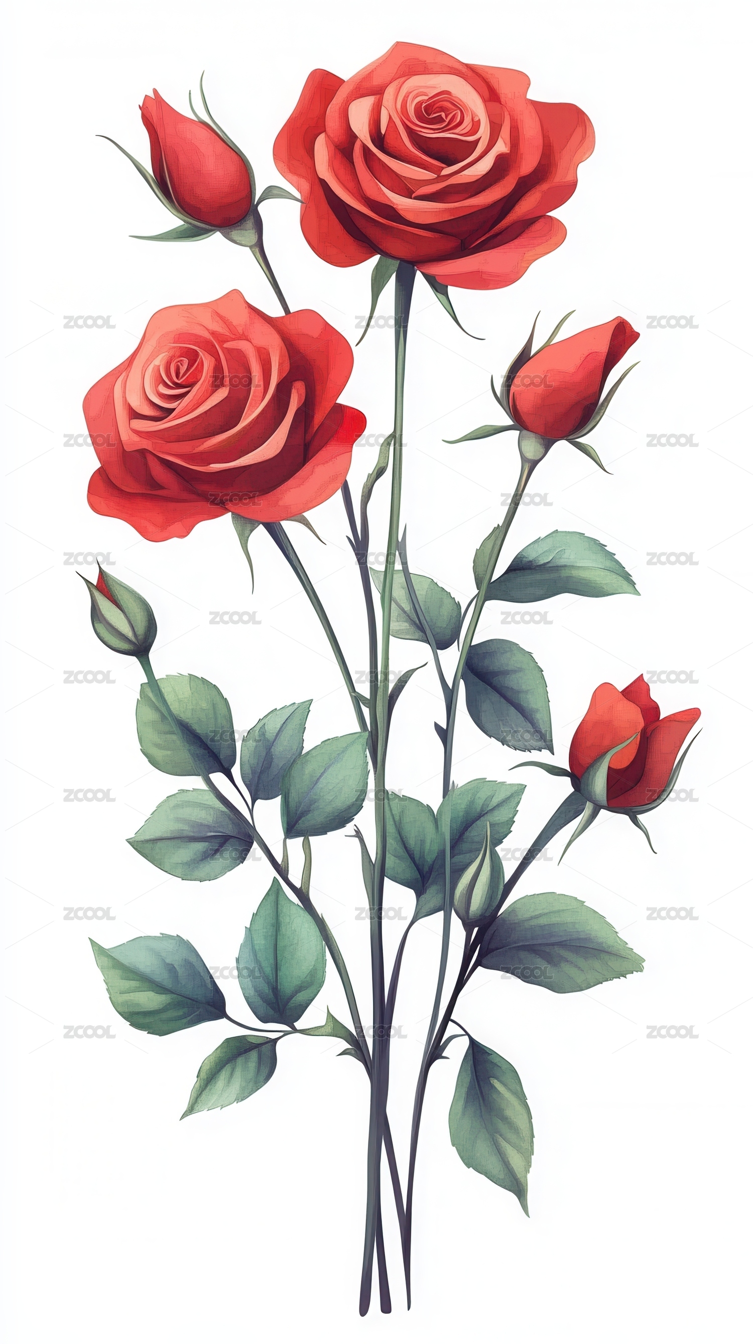 水彩红玫瑰花束图