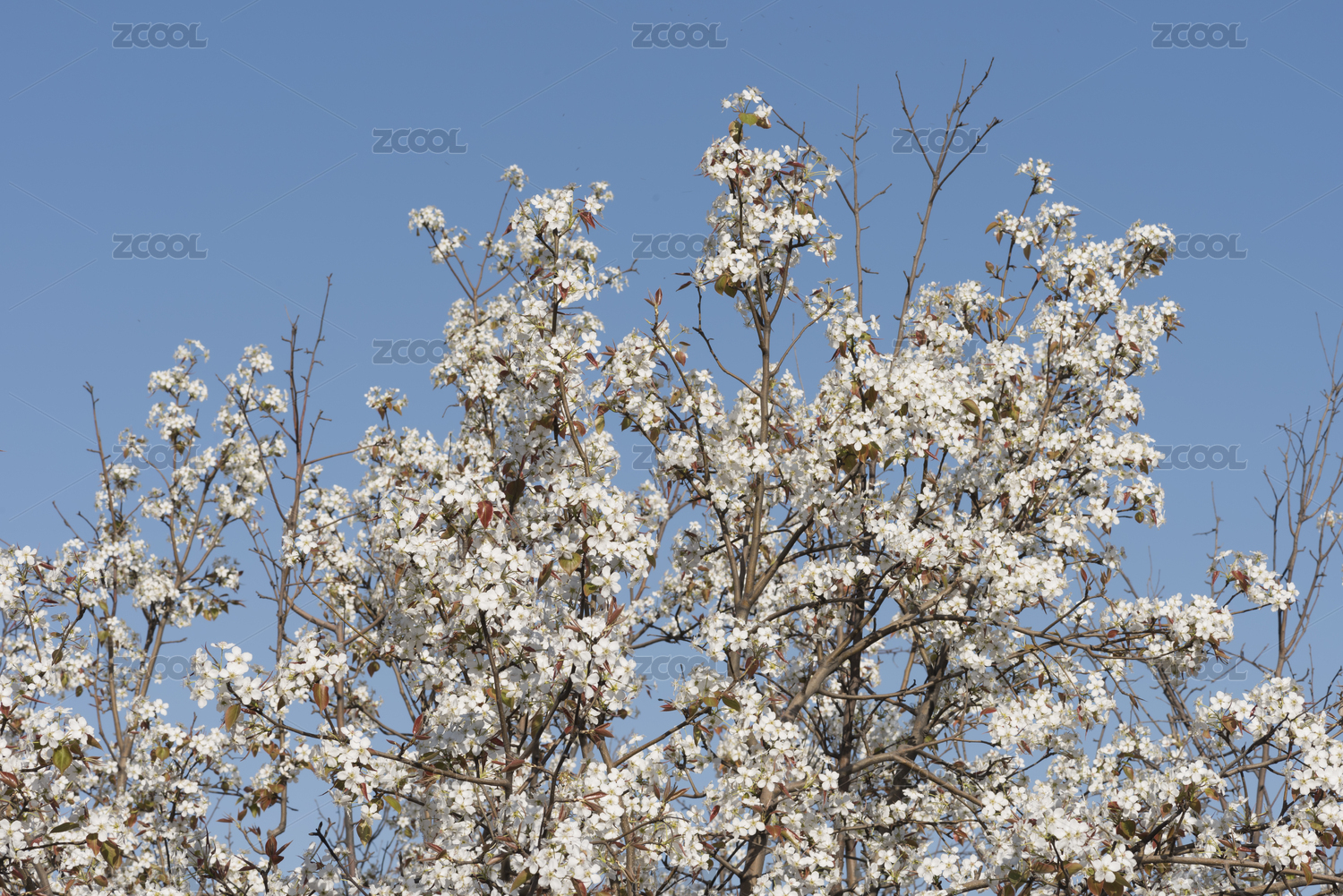老梨树花枝蓝天