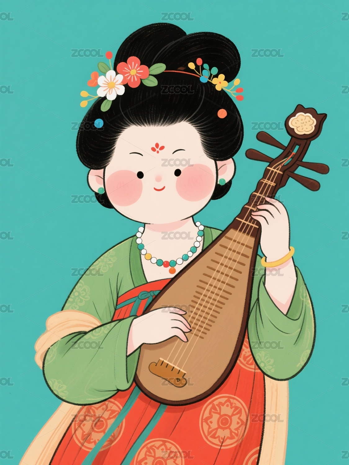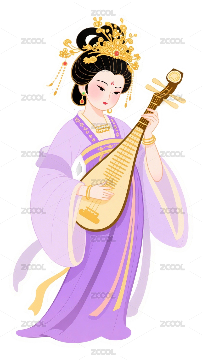 扁平风唐朝仕女优雅弹奏琵琶运营插画图