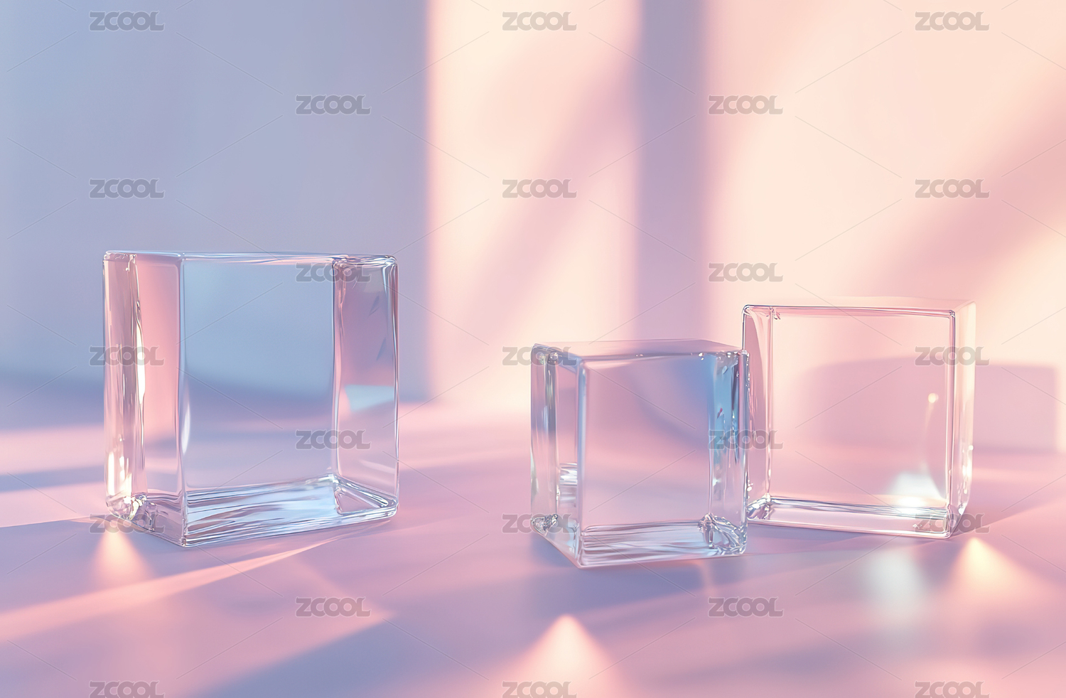 数码科技彩虹渐变玻璃立方体插画海报背景