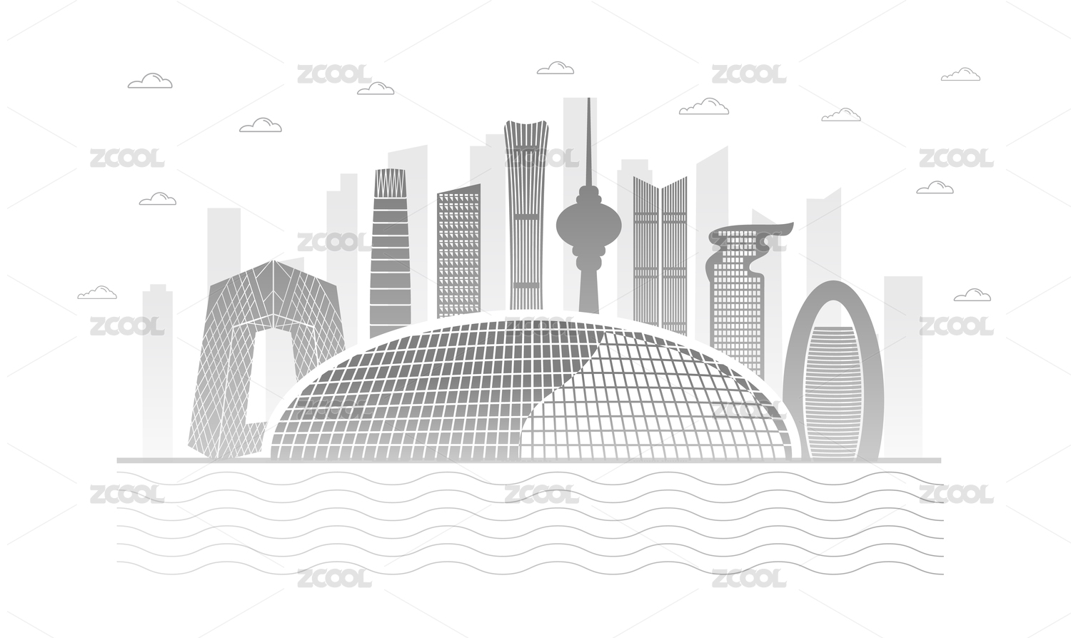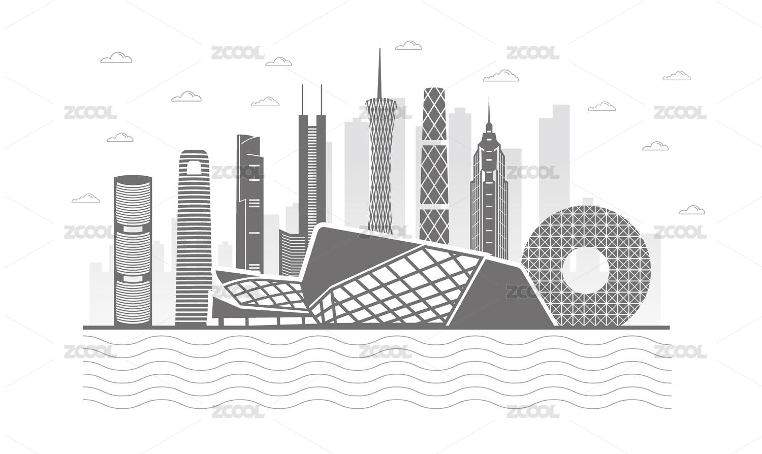 中国,天津市,城市,地标,风景,高楼,建筑,天际线,矢量,渐变