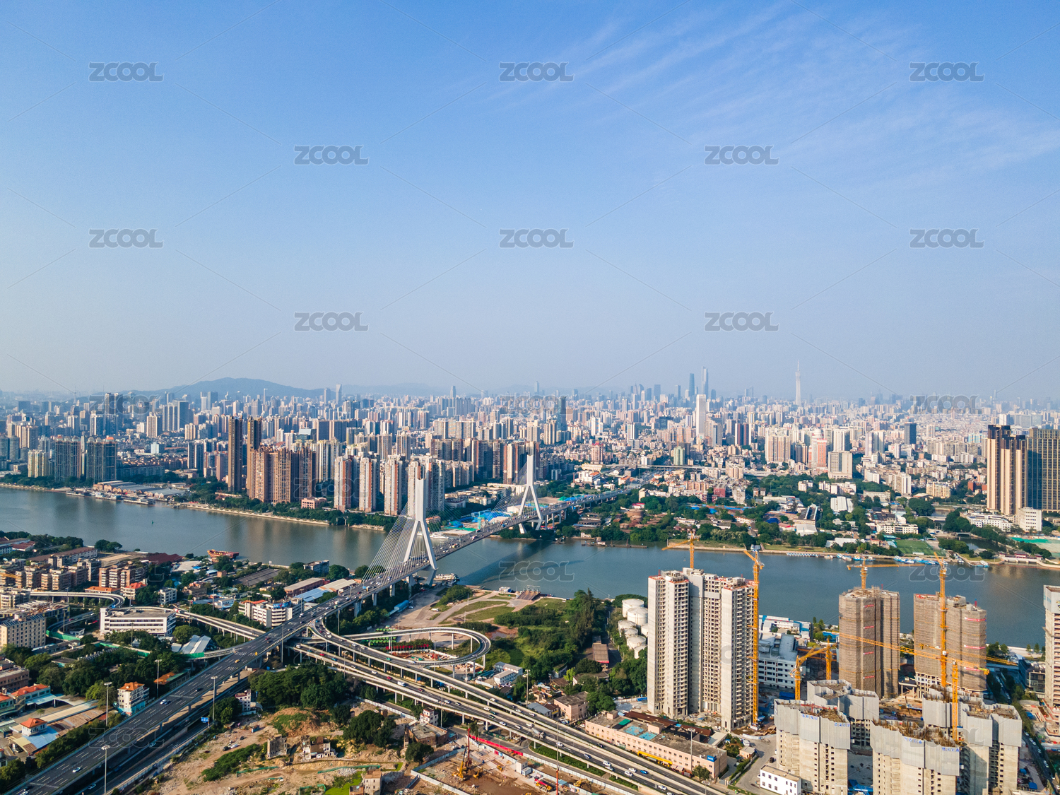 中国广东广州鹤洞大桥城市天际线晴天航拍风光