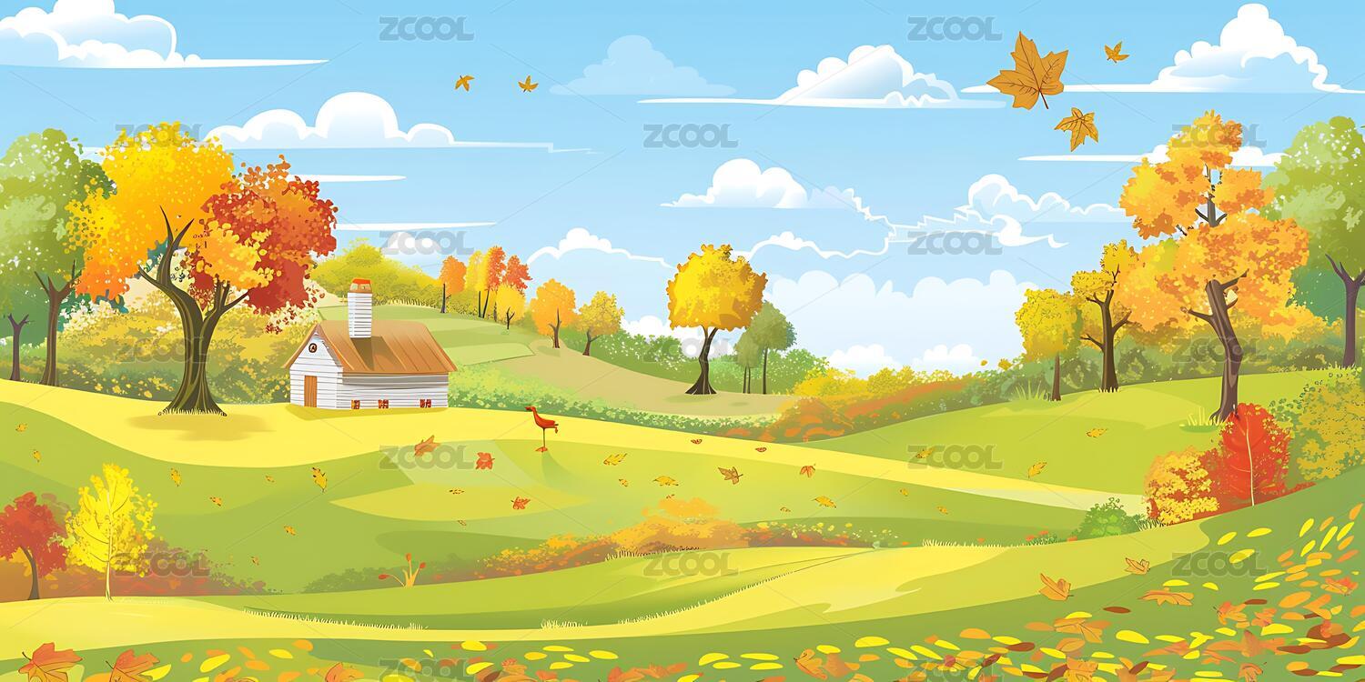 秋天户外农村插画背景壁纸