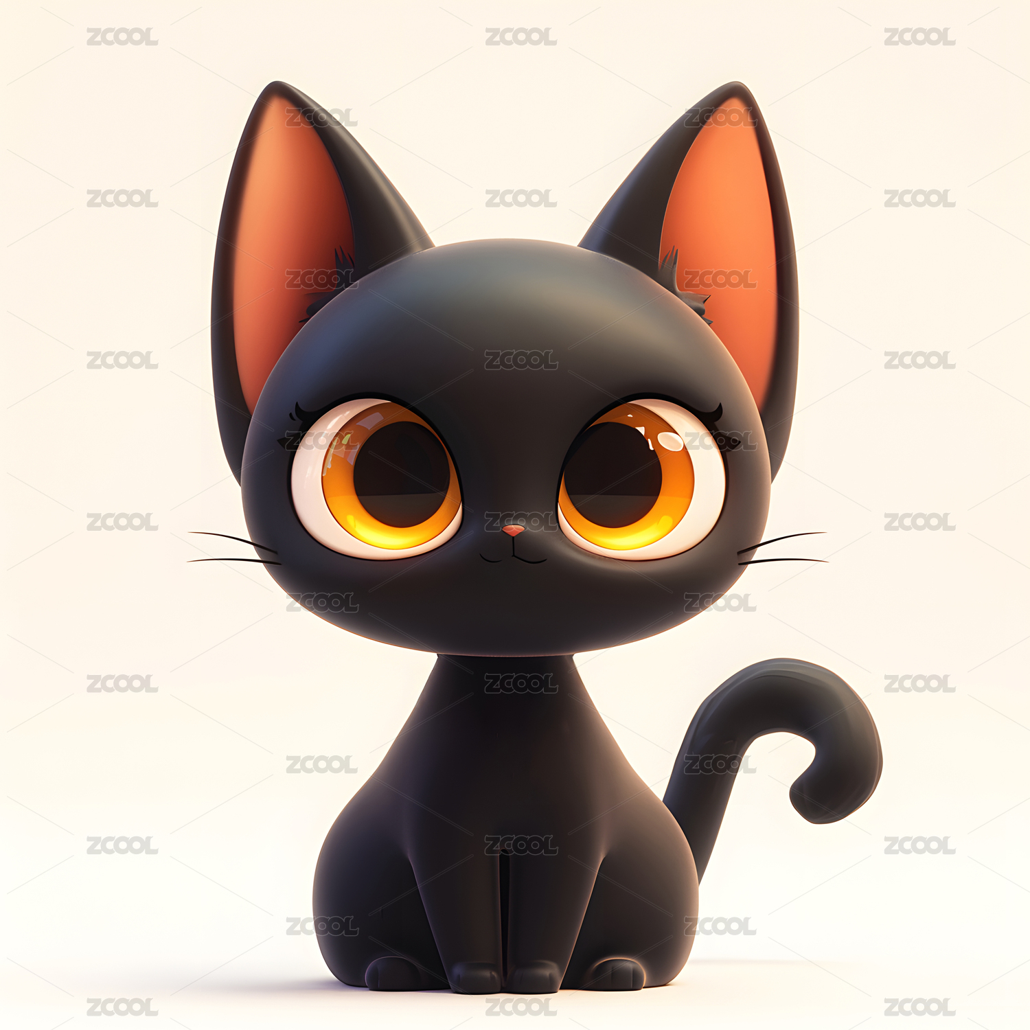 3D可爱卡通黑猫插画