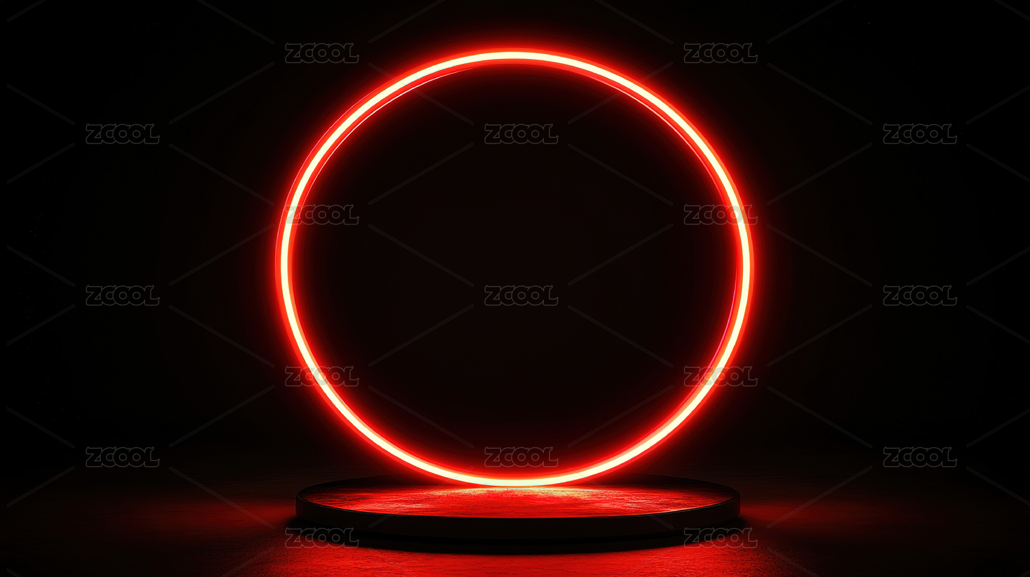 红色霓虹圆环与发光平台