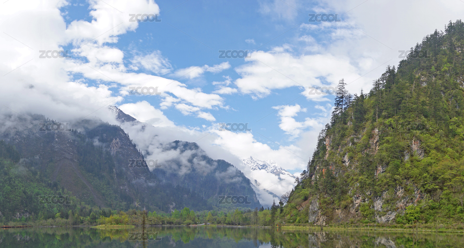 无人,户外,自然美,天空,湖,树,风景,西藏,梅里雪山,高原