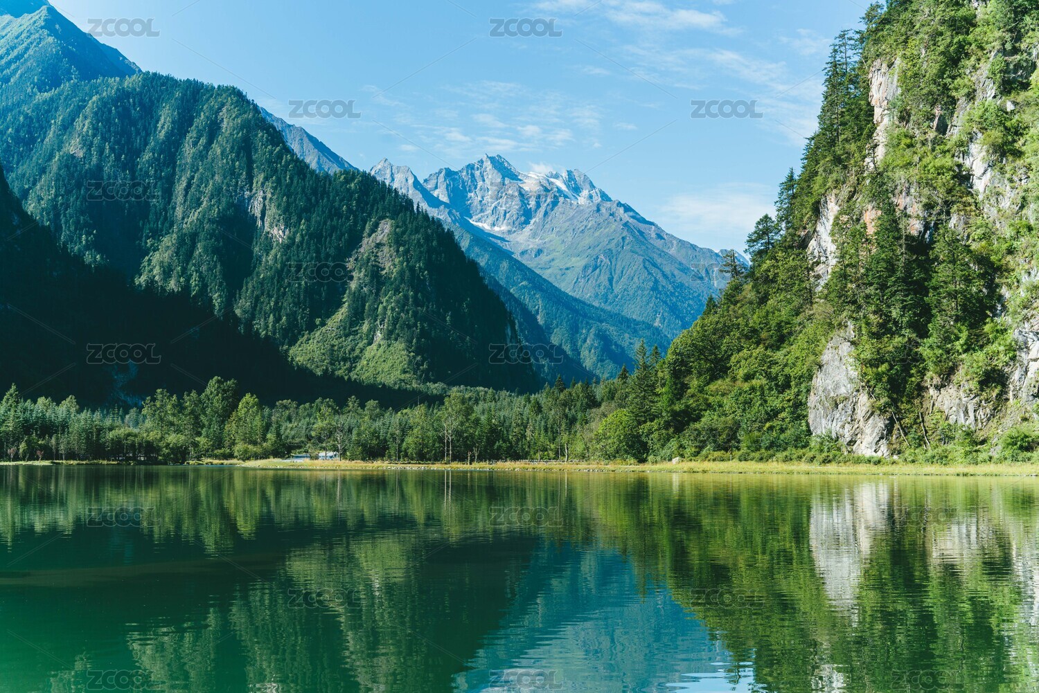 中国西藏林芝甲应村的梅里雪山和高原湖泊