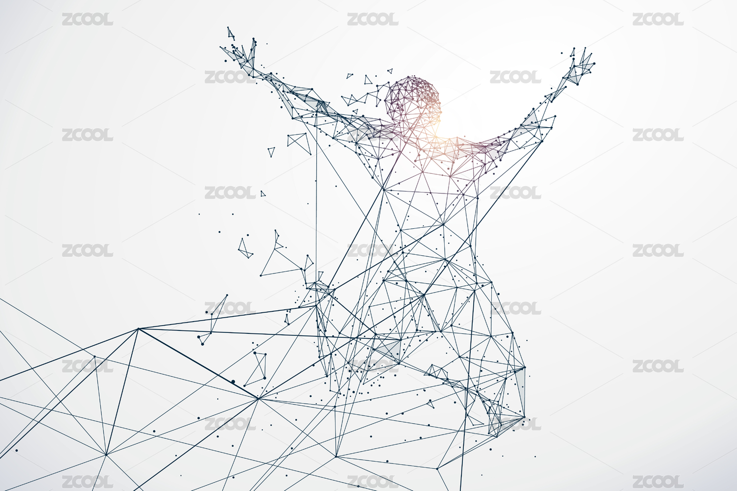 互联网技术的抽象图形、通过点线面链接的抽象图、科技背景图。