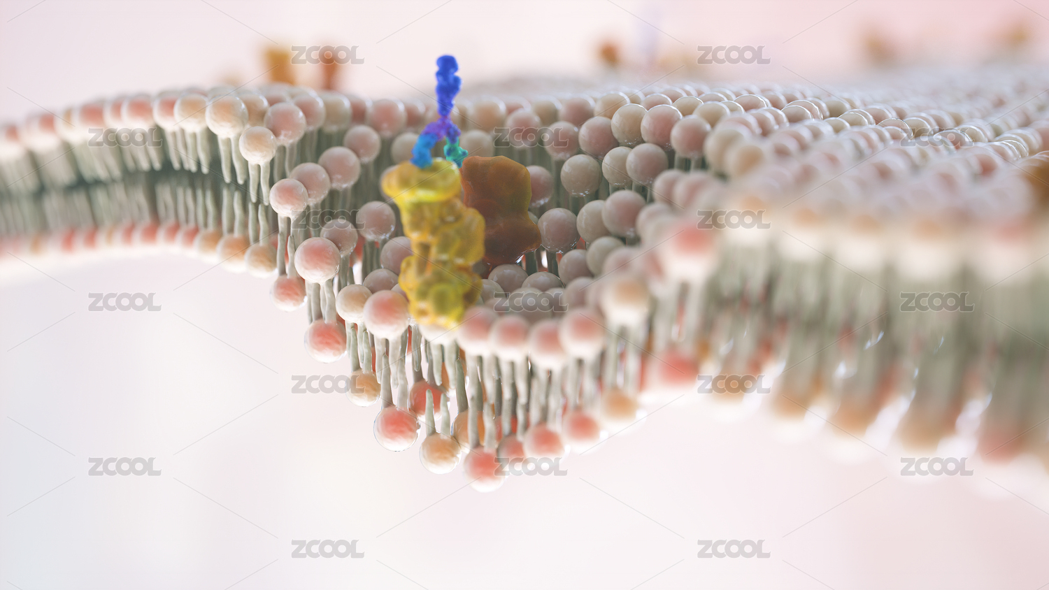 磷脂双分子层细胞膜3D渲染