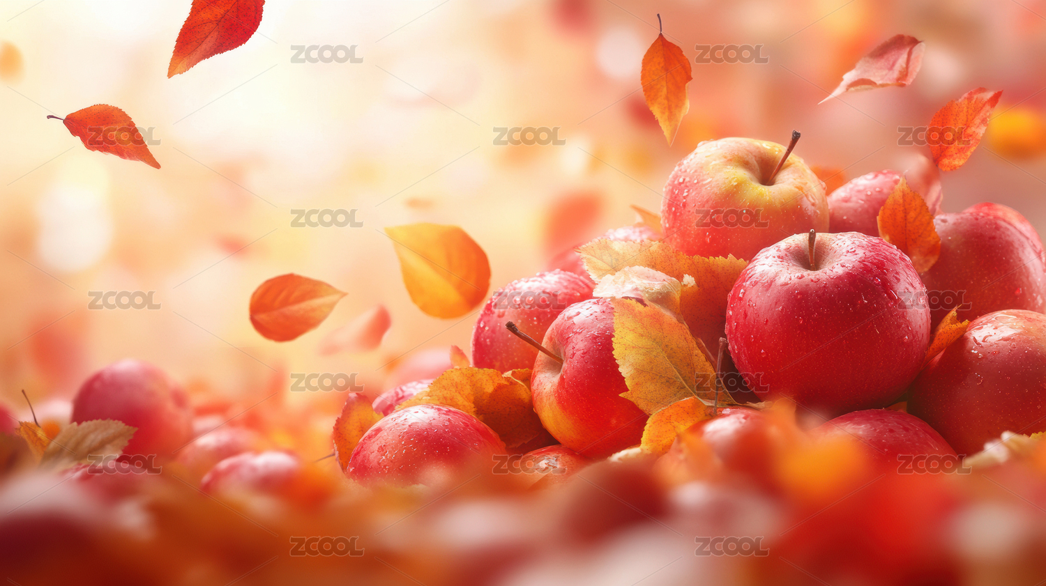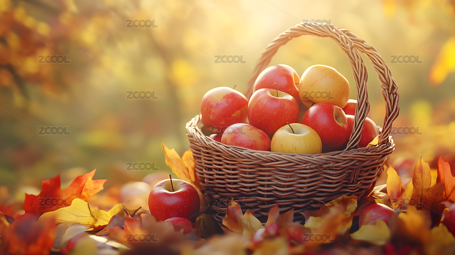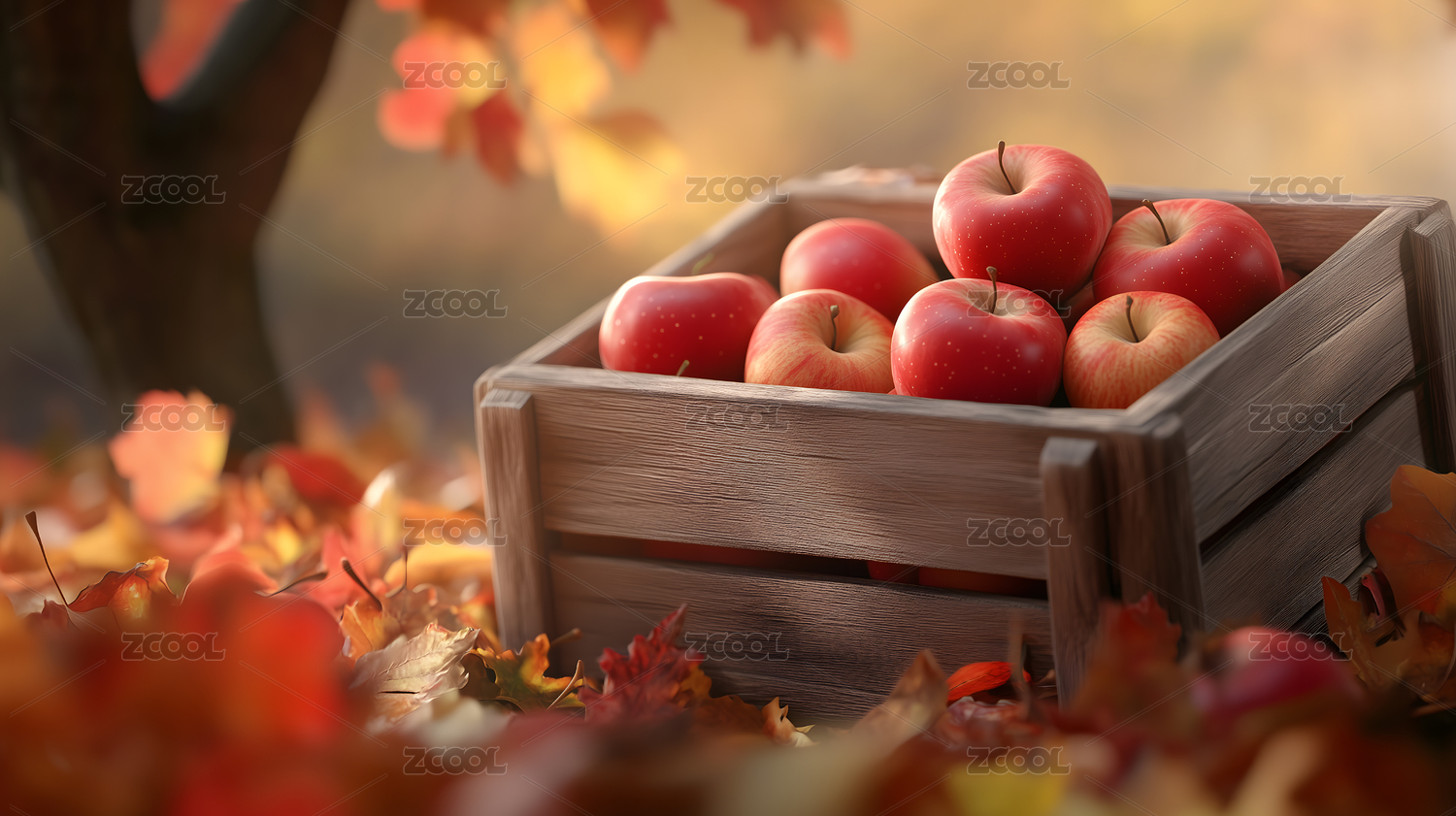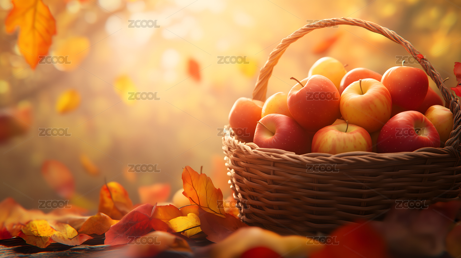 背景,秋天,秋分,丰收,收获,水果,金色,天空,云彩,树木