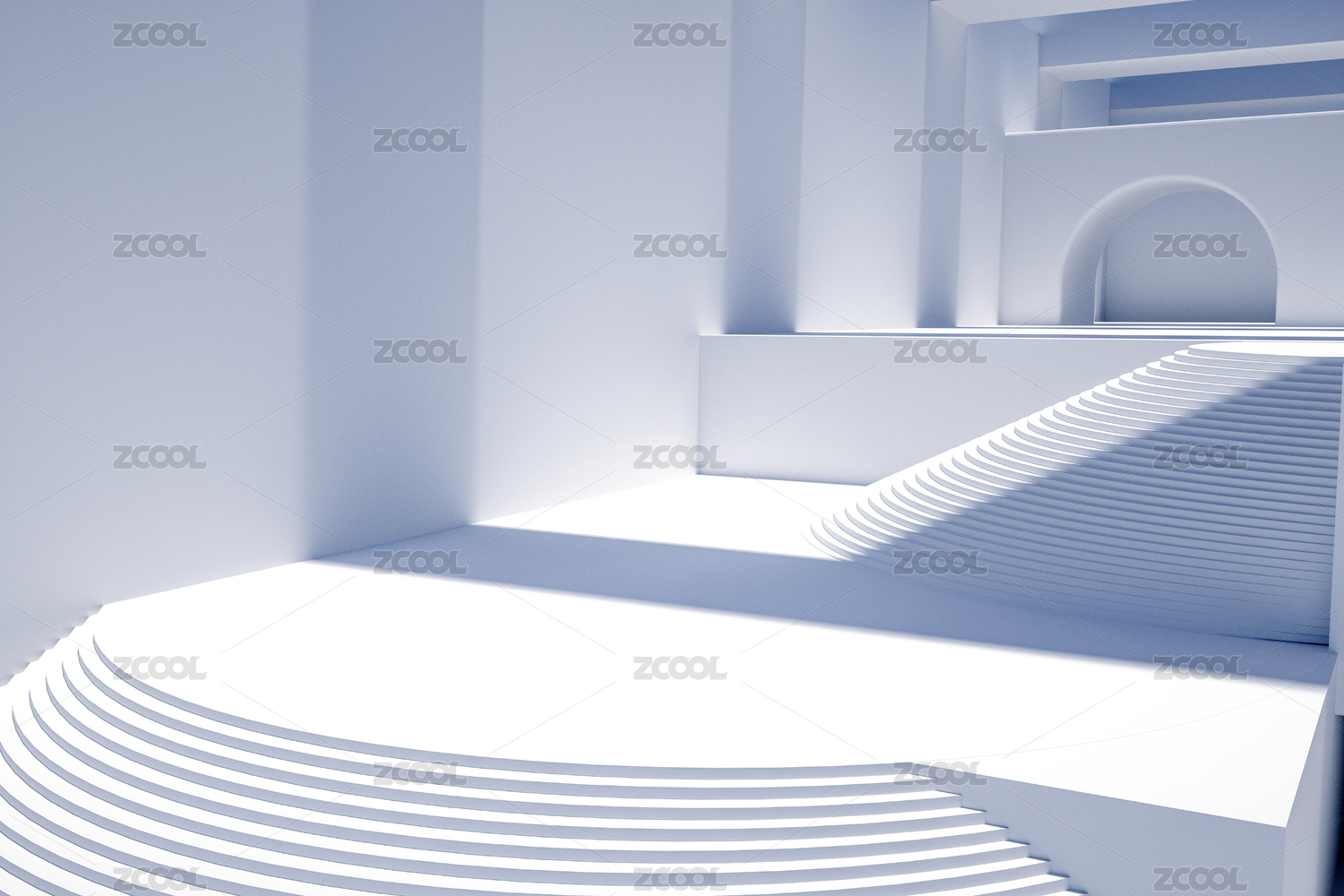 几何图形现代建筑室内空间3D渲染