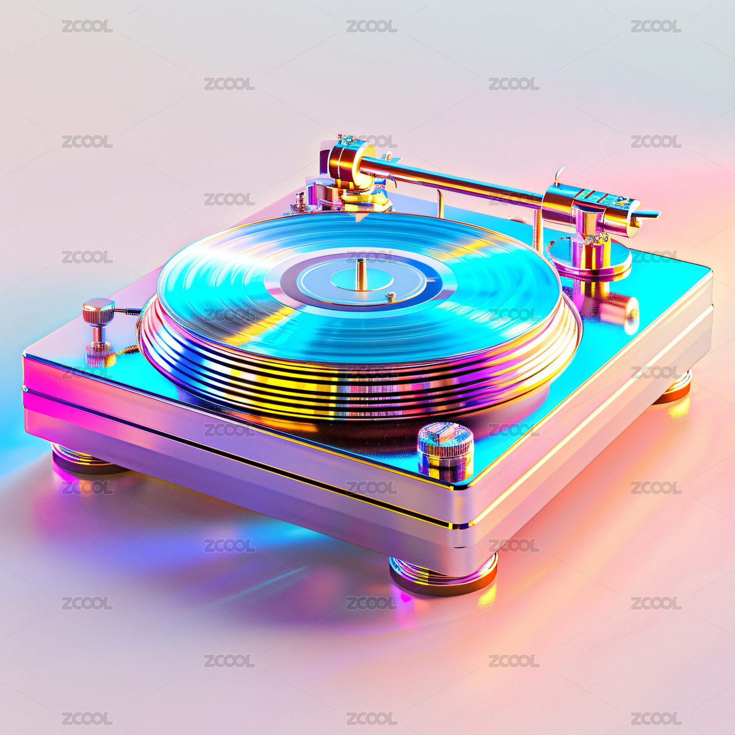 彩色唱片的霓虹光感唱片机