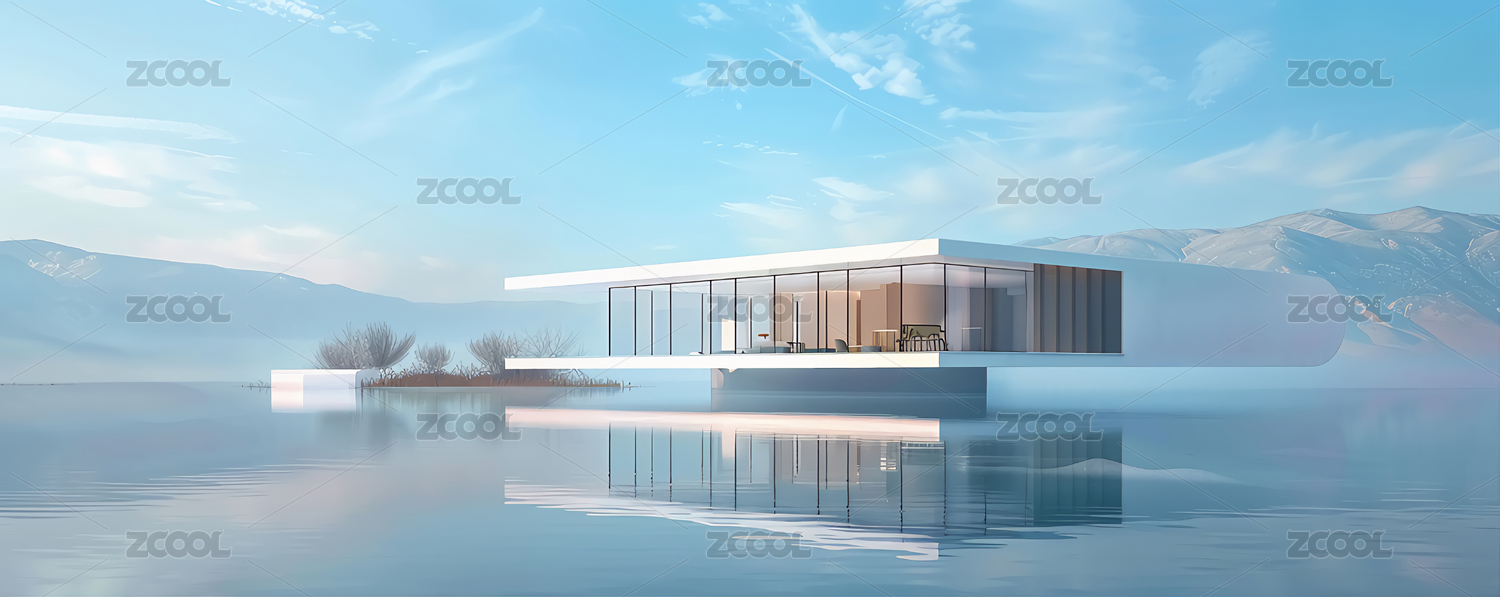 平静湖面上的现代简约住宅