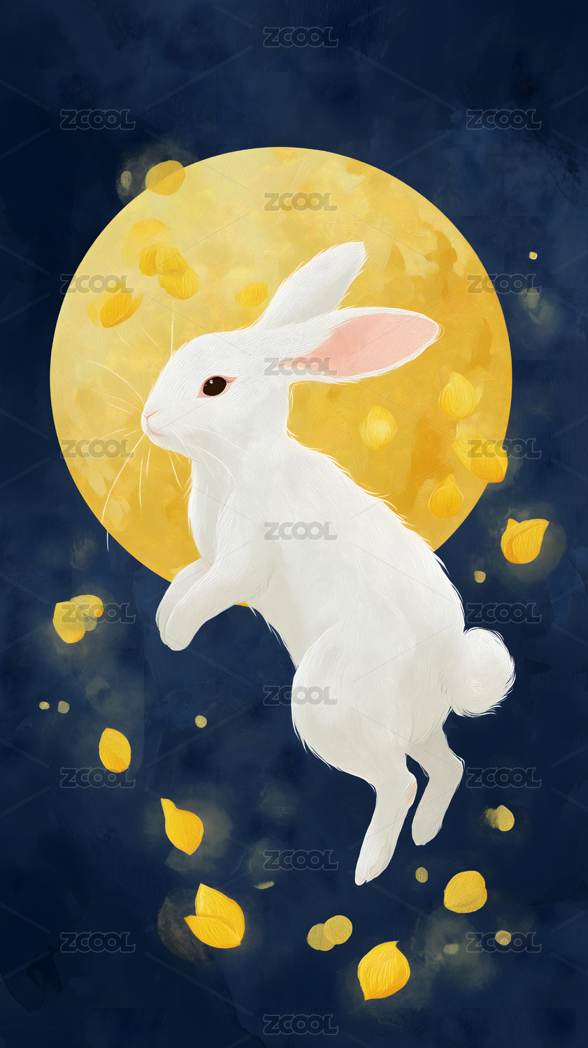 月满中秋节日玉兔愉快地赏月氛围感美景