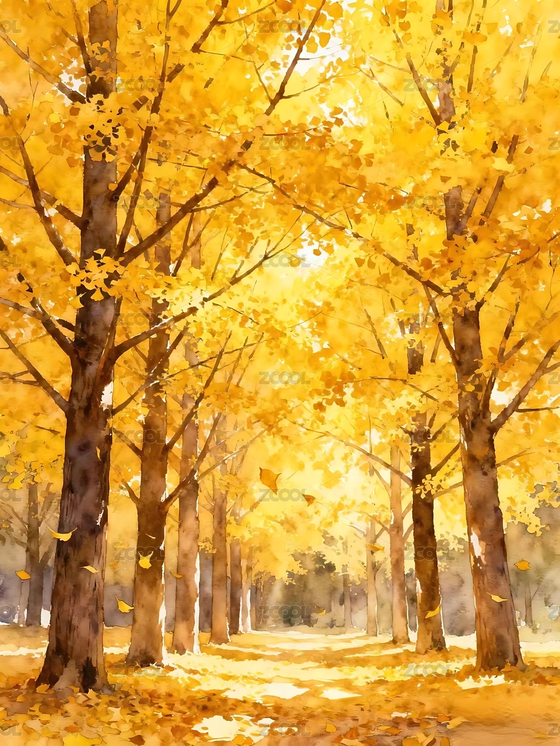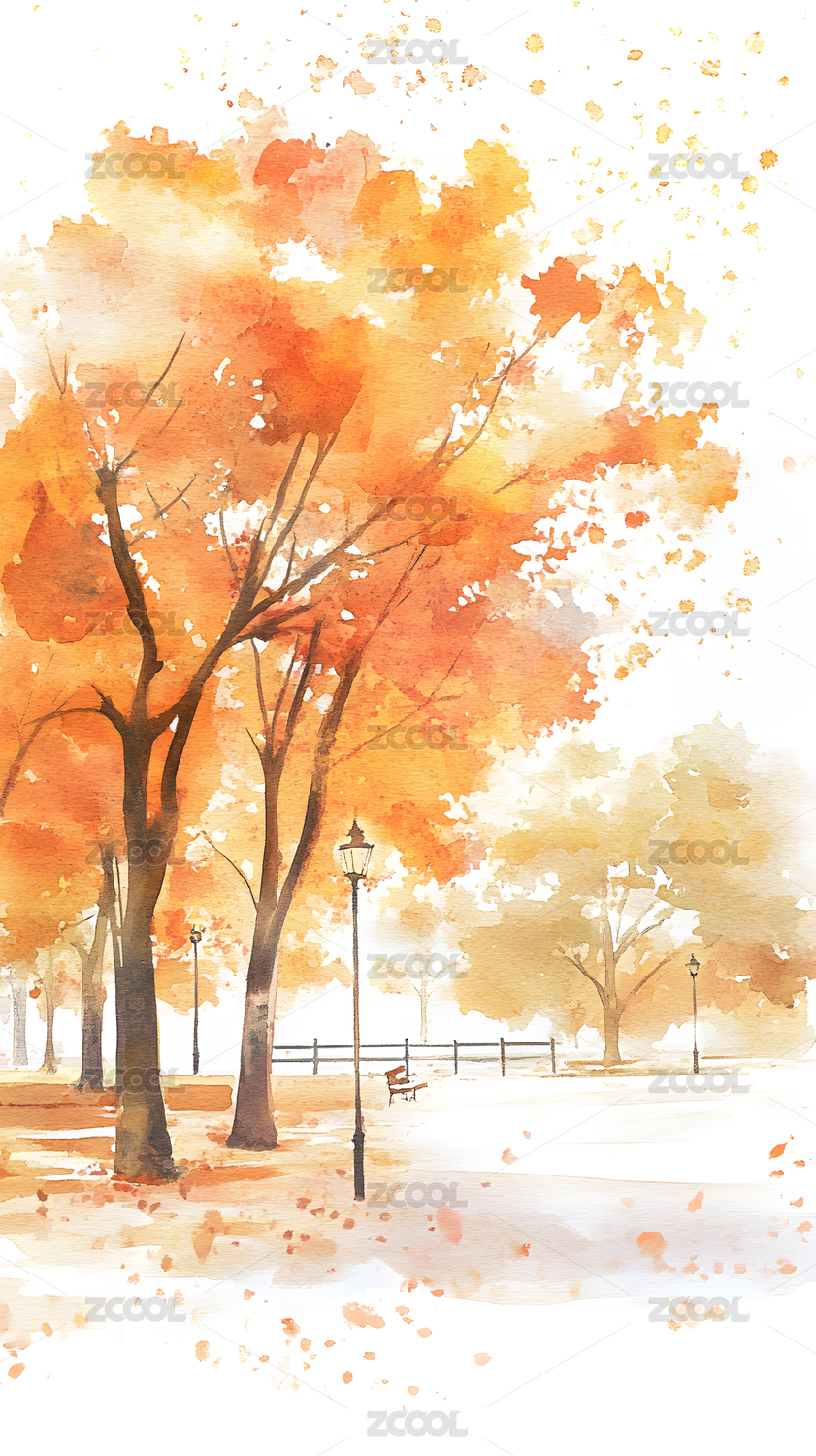 AIGC202402,秋天,插画,风景,秋季,白露,秋分,树叶,落叶,水墨