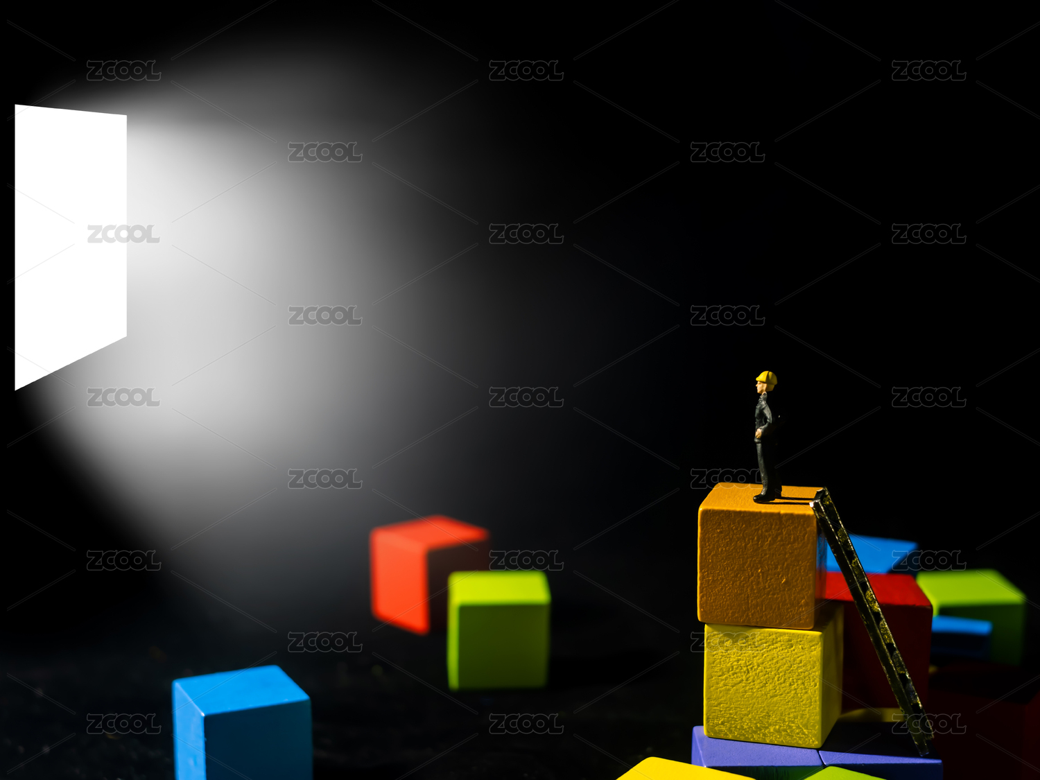 积木,小人模型,微距,特写,梯子,登高望远,希望,光,迎接未来,积极