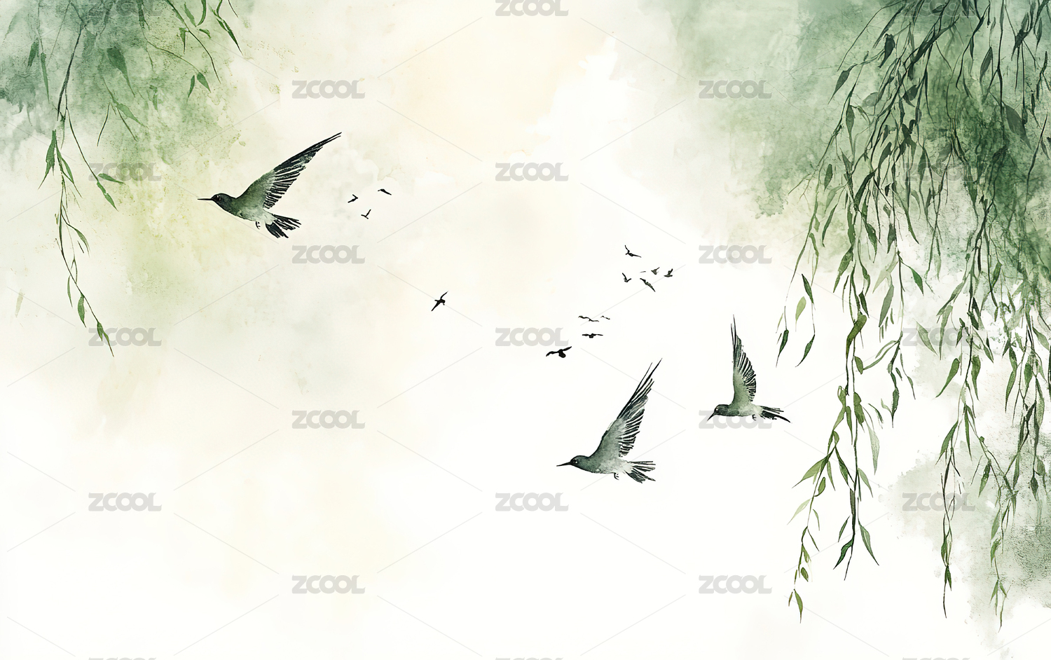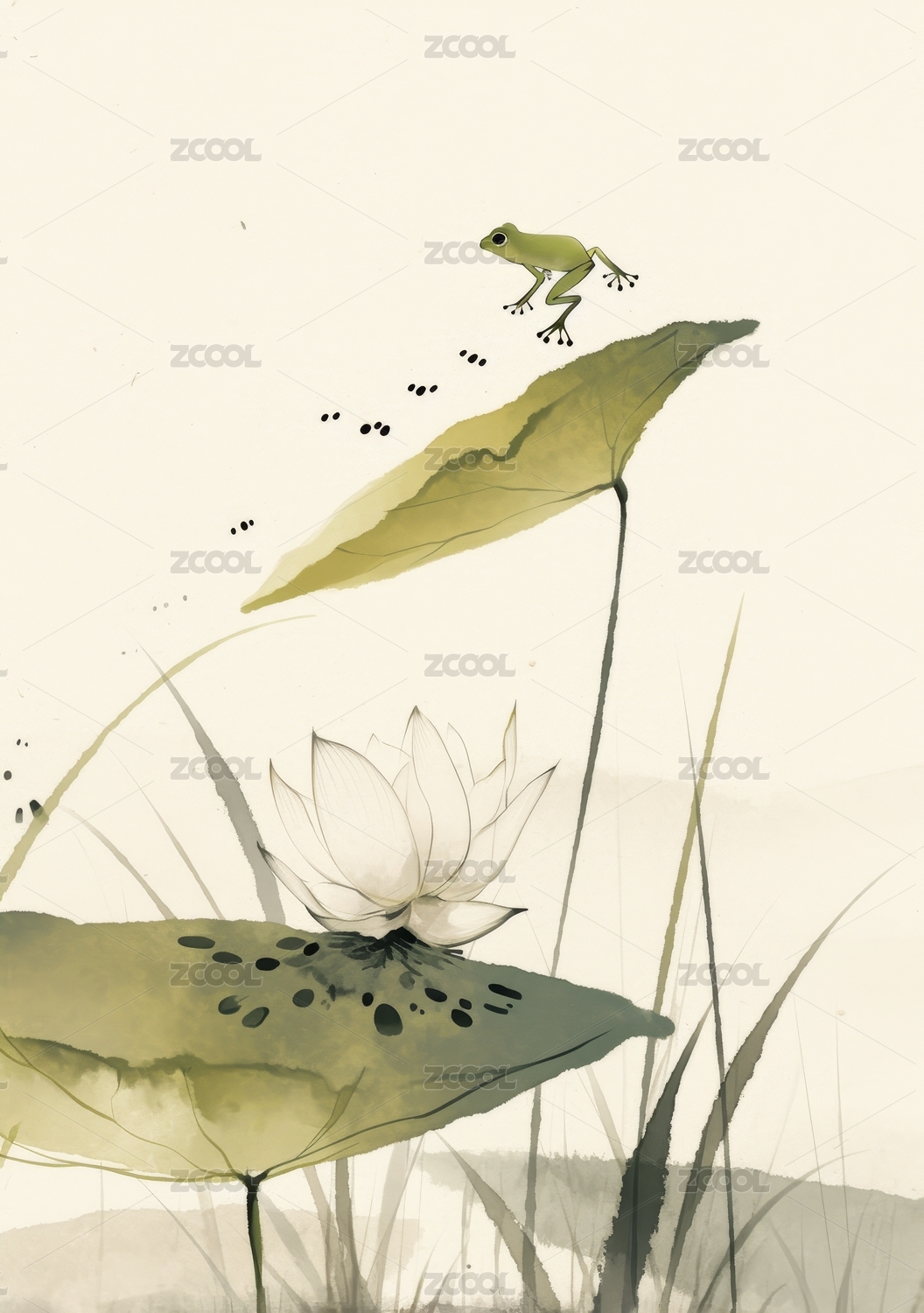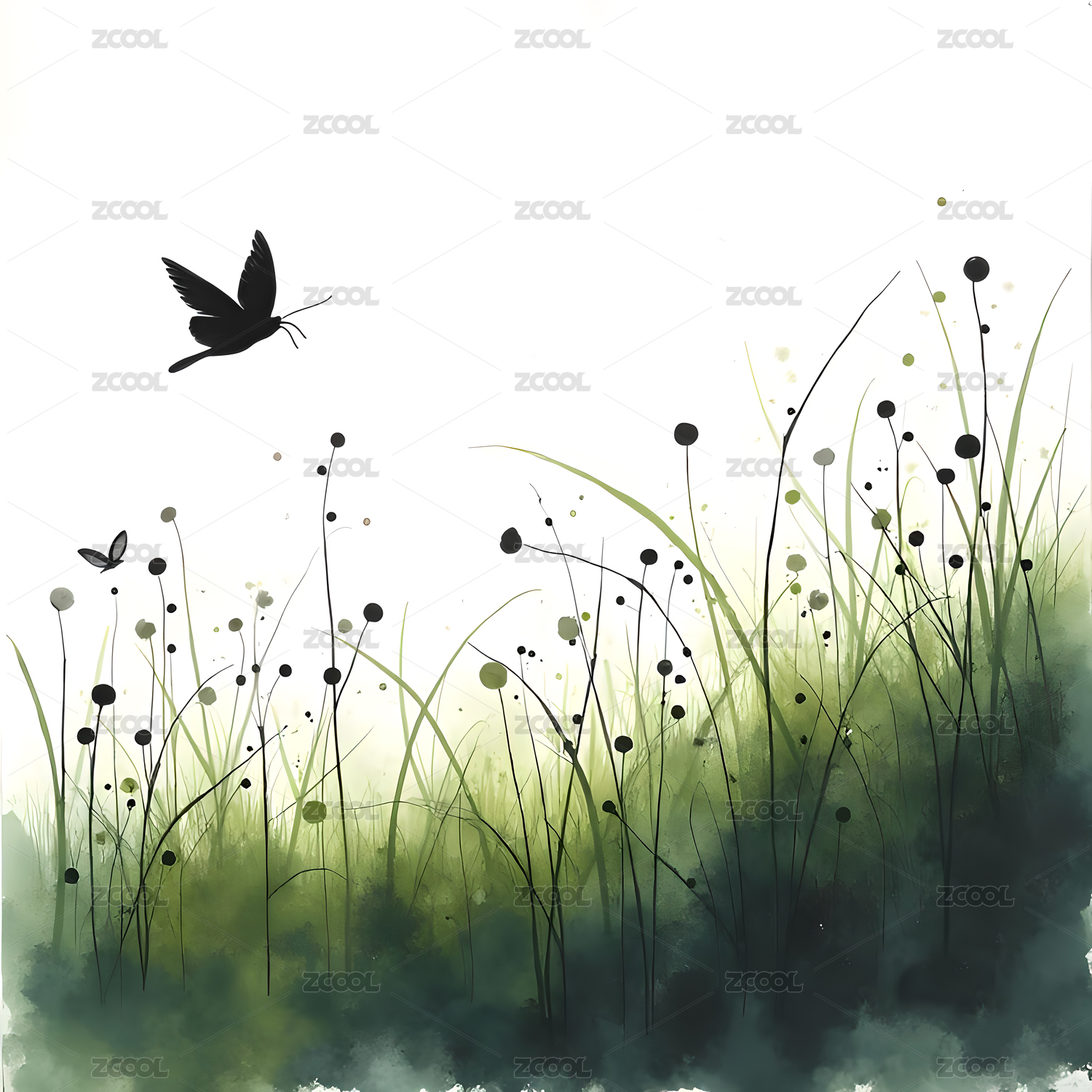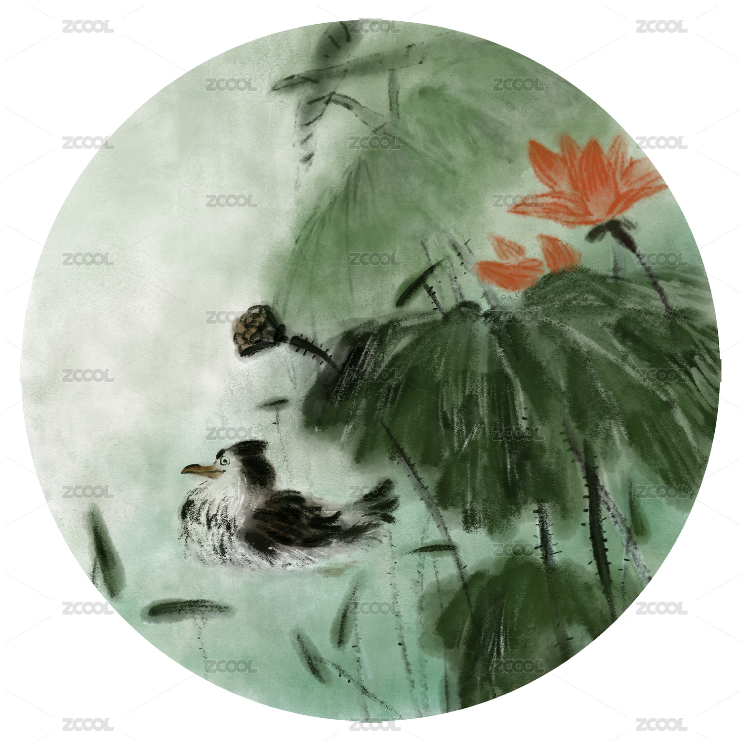 中国画,国画,水墨画,插画,花鸟画,意境画,植物,手绘,花朵,花卉