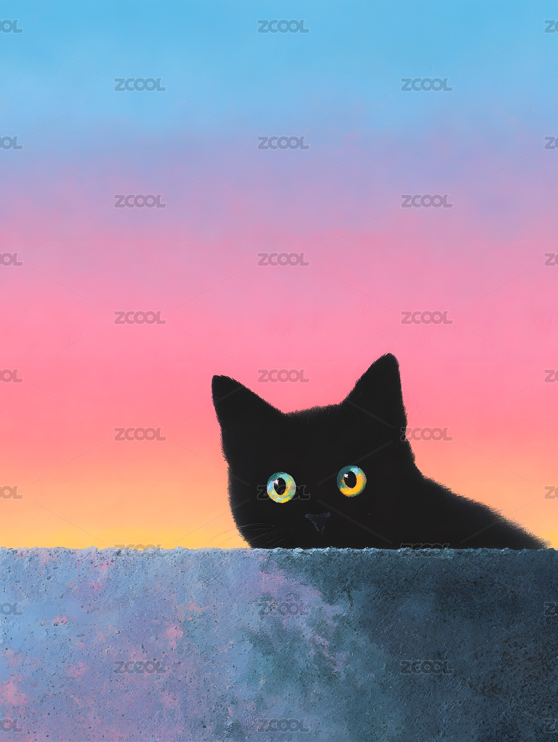黑猫探头于渐变绚丽天色下
